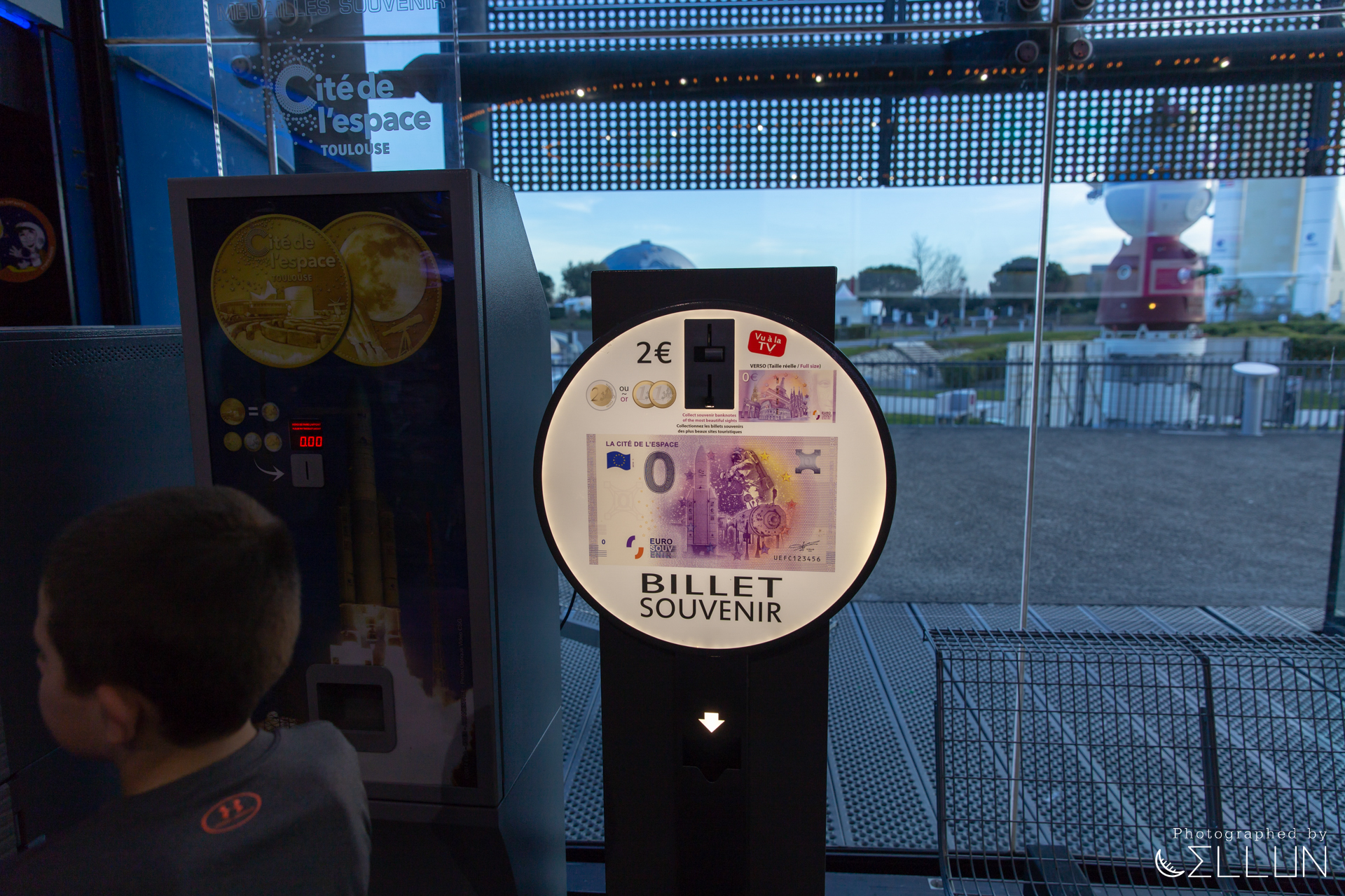 마지막으로 기념품샵에서는 Cité de l'espace 관련 각종 기념품과 우주와 관련된 책, 모형 등을 위주로 판매하고 있었습니다. 그리고 한 켠에는 기념주화 자판기가 있고, 기념지폐 자판기도 있었습니다.