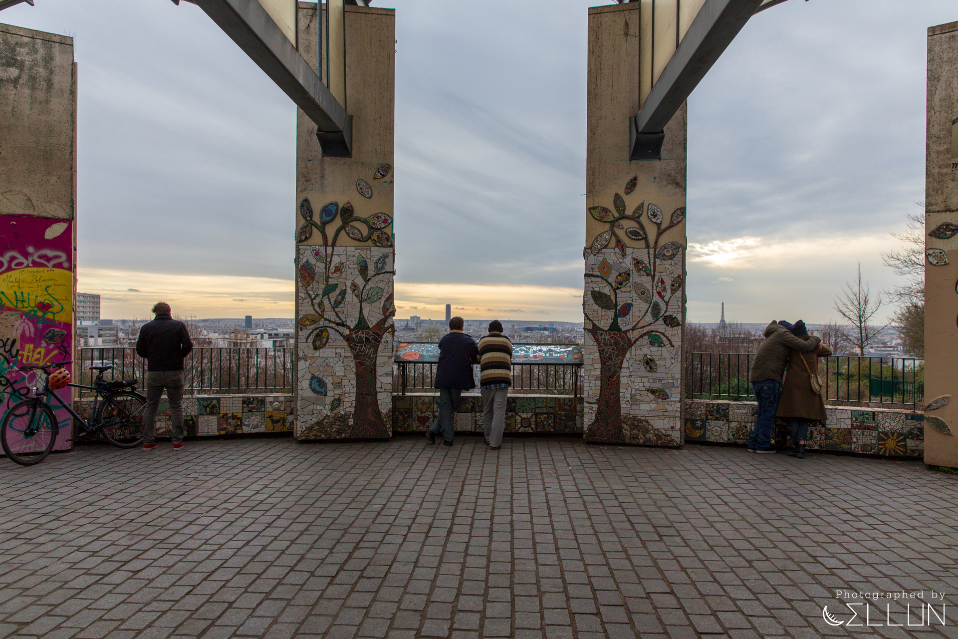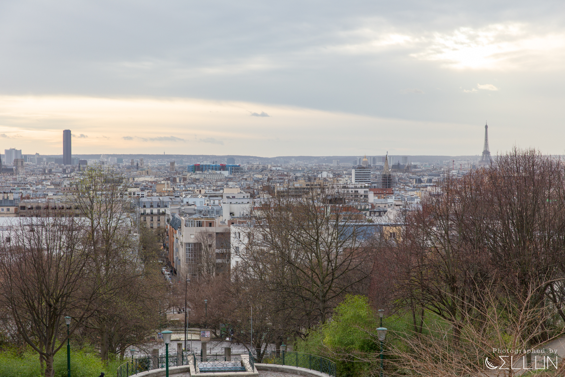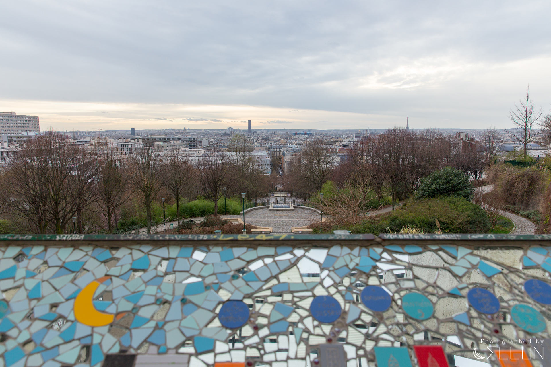 뷔뜨 쇼몽 공원이 운치있는 대형공원 분위기라면 벨빌 공원은 서민적인 근린공원 느낌이 많이 납니다. 벨빌공원이 있는 이 곳이 지대가 높아서 파리 시내가 잘 내려다 보입니다. 높은 곳에 위치해있고 시내가 잘 내려다보이는게 몽마르뜨 언덕과 약간 비슷한 분위기가 나는데, 몽마르뜨는 전형적인 관광지라면 벨빌 공원은 좀 더 현지 동네 분위기가 많이 났습니다. 이렇게 보니 금호동, 옥수동 쪽에 있는 산에 있는 전망대 같은 느낌도 드네요.