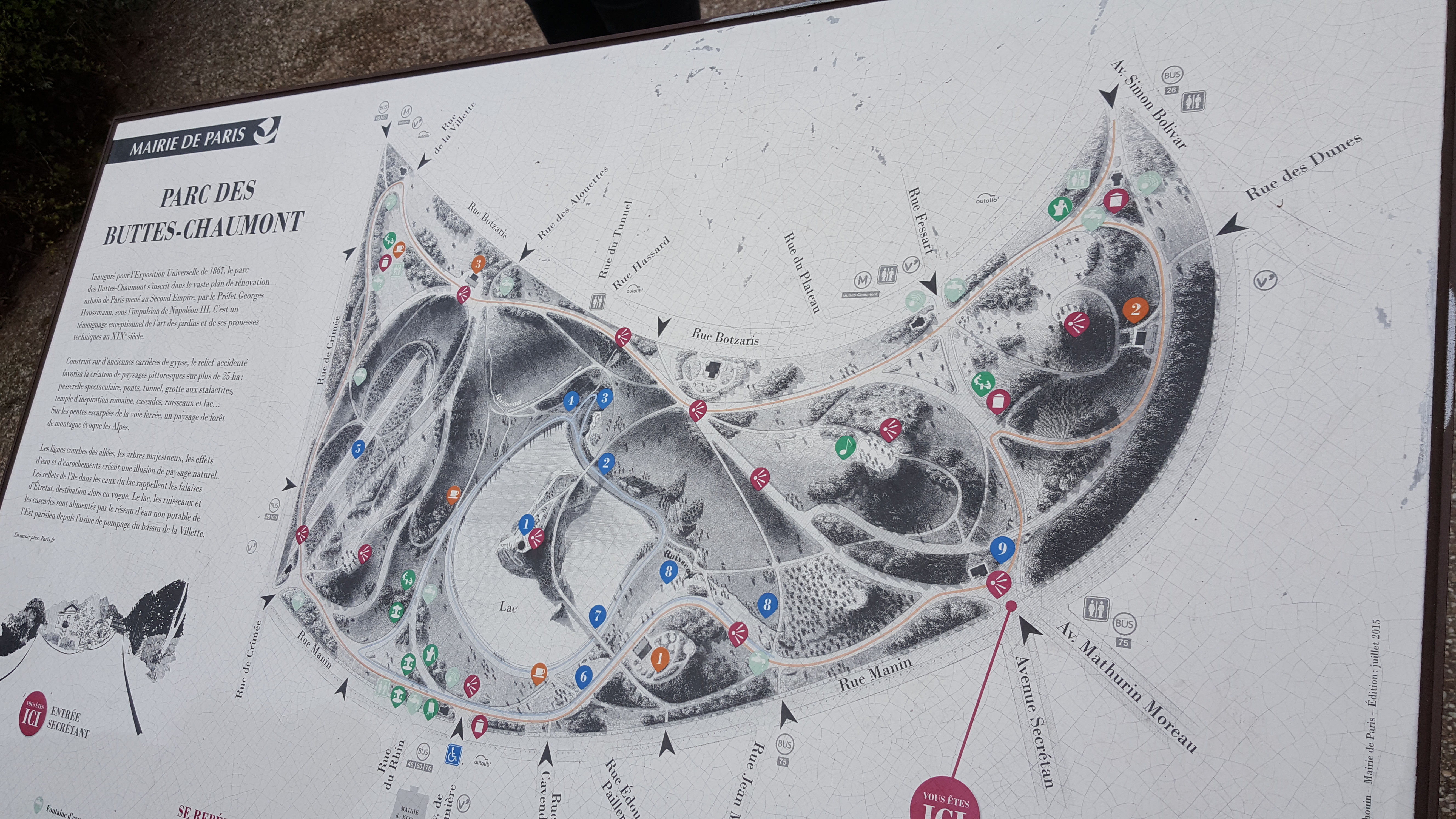 하지만 뷔뜨 쇼몽 공원은 규모와 파리답지 않은 극적인 경치로, 벨빌 공원은 고지대에 위치해 있어서 시내가 잘 내려다 보이는 등 서로 다른 개성을 갖고 있어서 가보길 잘했다는 생각이 드는 곳이였습니다.