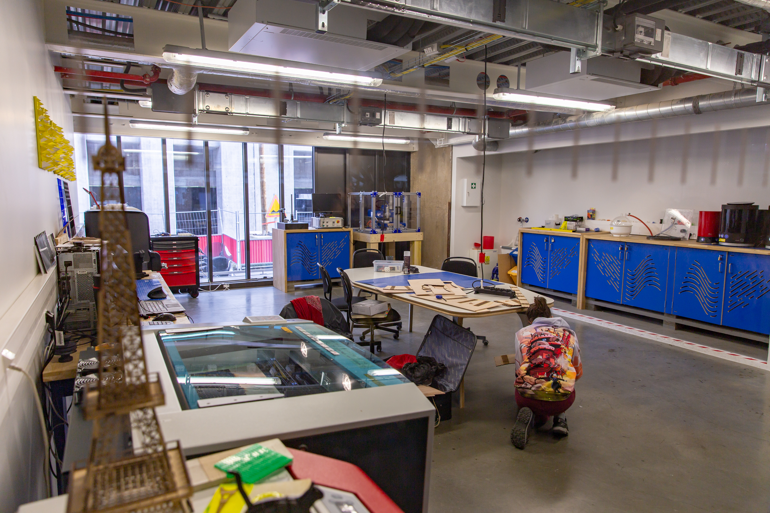 뒷쪽으로 난 통로에는 본격적인 공작실이 있었는데, 각종 공작 도구 및 고급 3D 프린터와 함께 재료들도 구비되어 있어 스타트업 누구나 여기서 시제품을 만들어볼 수 있었습니다. (단 비용부담은 좀 있다고 하네요.)