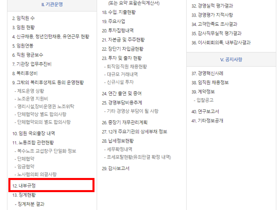 여기서 저는 12번. '내부규정'을 들어가보도록 하겠습니다.
