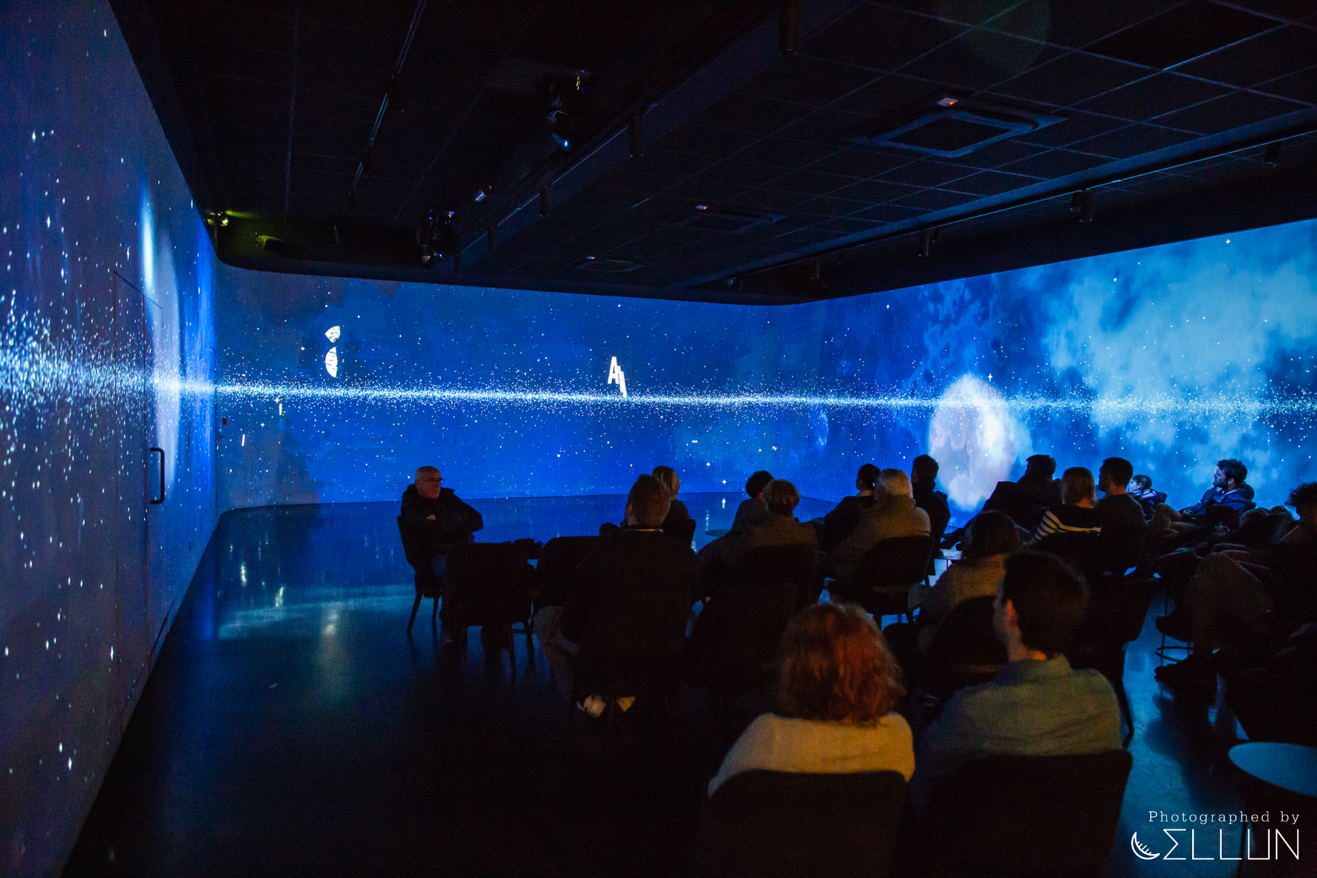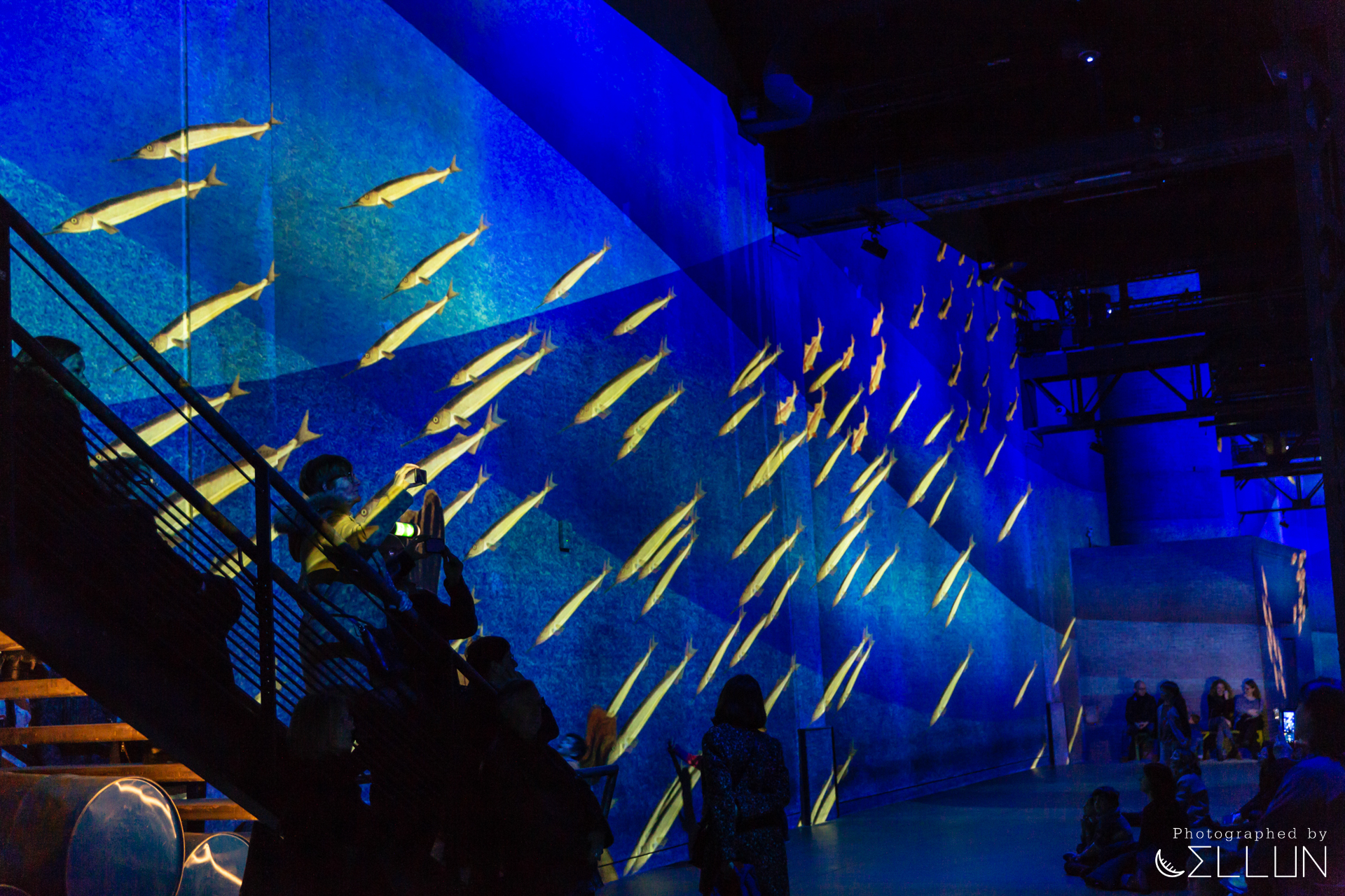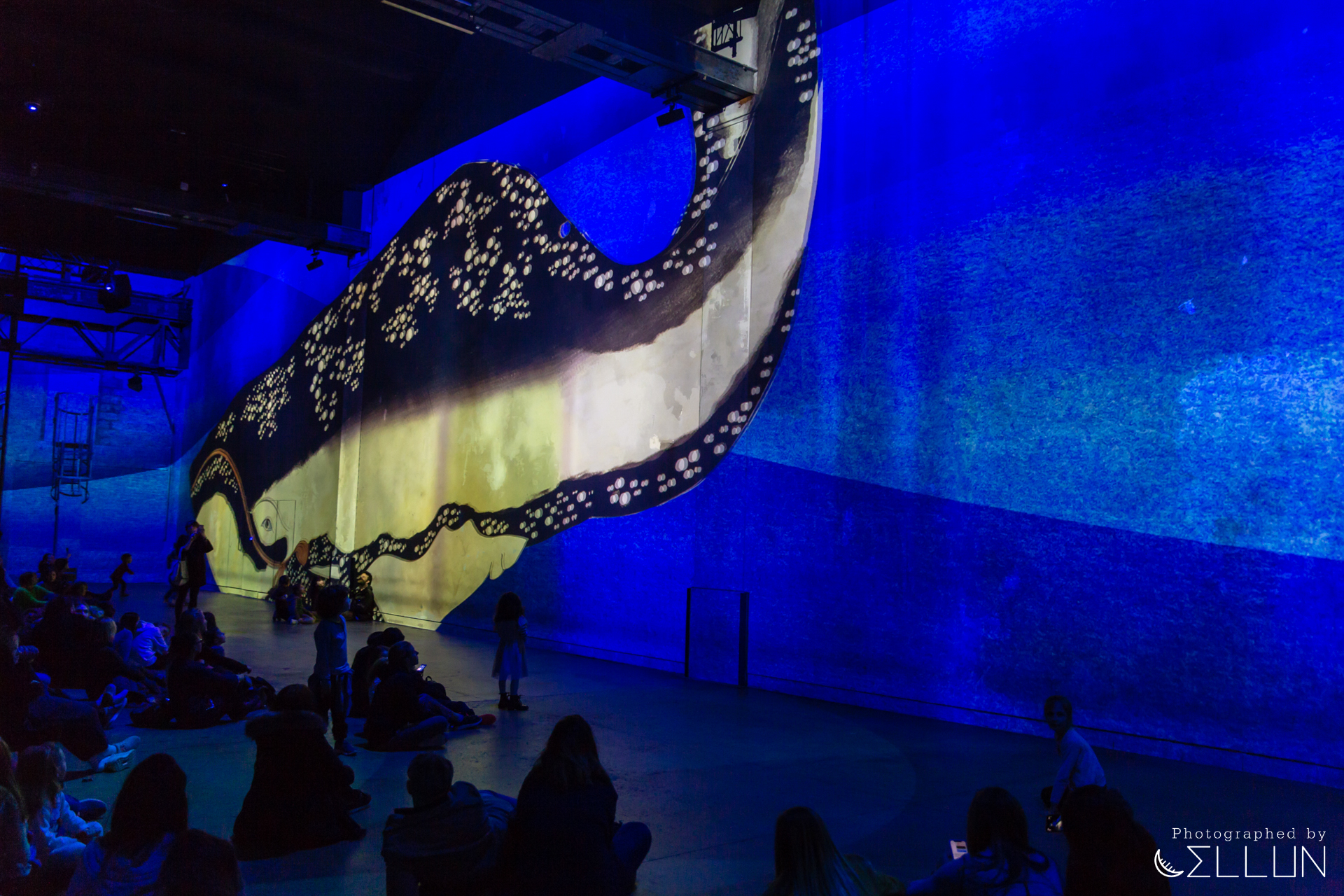 생각보다 넓은 공간에 한 번 놀라고, 서서 보는 사람, 의자에 앉아 보는 사람, 땅바닥에 앉아 보는 사람, 앞에서 뛰어노는 아이들 등... 정적으로 관람하는 공간이 아니라, 이 곳 자체가 또 하나의 세상인 듯한 느낌에 또 한 번 놀랐네요.