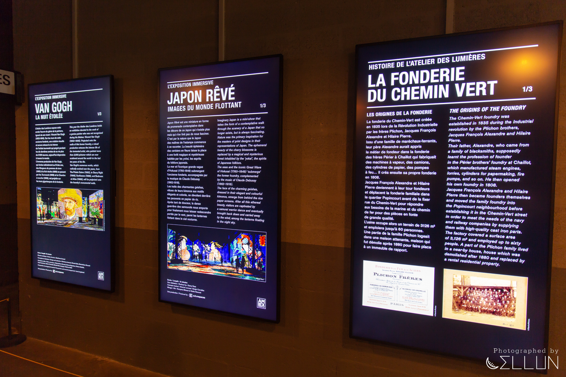 나중에 인터넷으로 자세히 알아보니 이 빛의 아틀리에는 1835년부터 주물공장으로 사용되던 건물을 개조하여 작년 2018년에 디지털 아트센터로 새롭게 개관했다고 합니다.