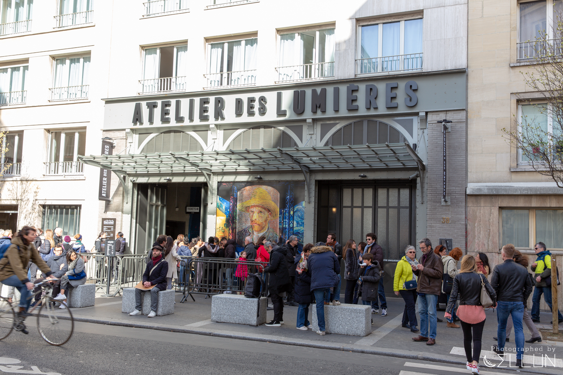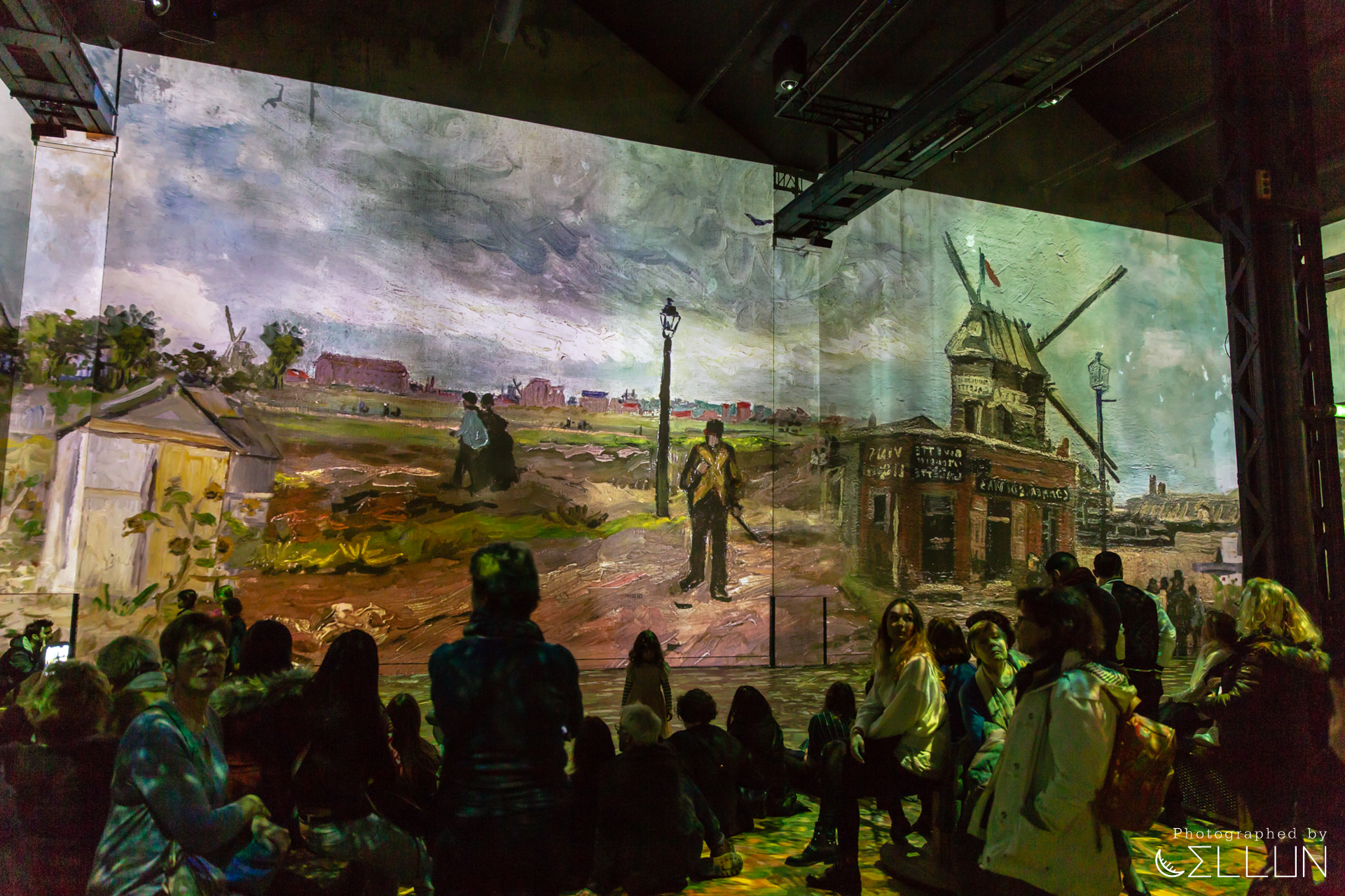 주변은 그냥 평범한 주택가 같은 분위기인데, 사람들이 잔뜩 줄을 서고 있었고 앞에는 고흐 그림이 그려진 모습.