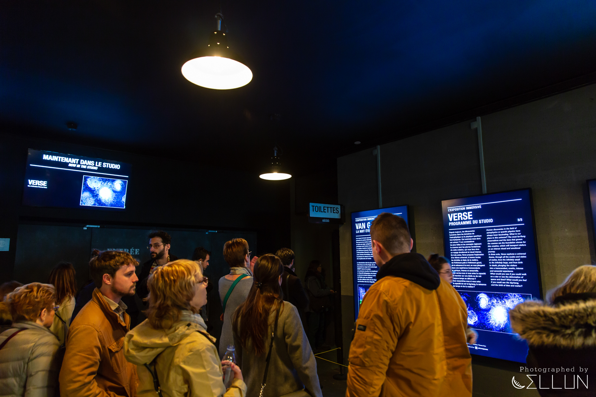빛의 아뜰리에는 표 검사를 상영관 앞이 아닌 건물 입구에서 합니다. 표를 확인하고 안으로 들어가면 상영 중인 영상 안내판과 화장실, 그리고 기념품샵이 보입니다. 내부가 그렇게 넓지 않은데 사람이 많아서 꽤 혼잡한 분위기였습니다.