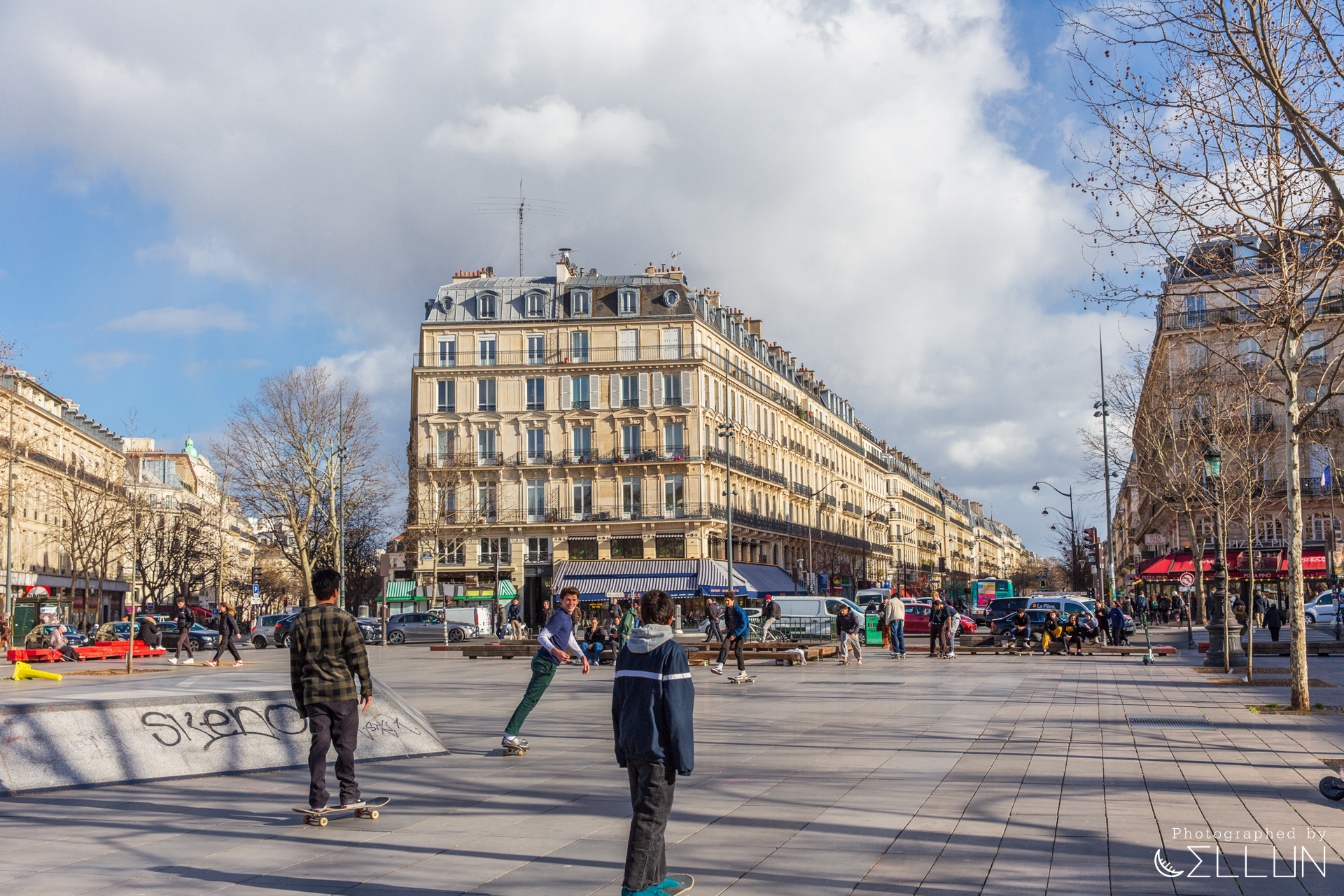 헤퓌블리크 광장은 직사각형 모양의 네모 반듯한 모양의 광장으로 파리에 있는 여러 광장 중에서도 손꼽힐 만큼 광활한 넓이였습니다. 주변 도로는 차도 많이 다니고 행인들도 많은데, 10대-20대 학생들이 보드를 타면서 노는 등 연령대가 어리다는 느낌을 받았습니다.
