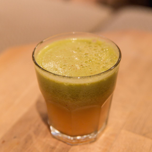 아까 빵 하나 먹었더니 좀 갈증이 나서 카페에서 주스를 시켰습니다. 사과, 케일, 레몬 등을 갈아서 만든 맛입니다.