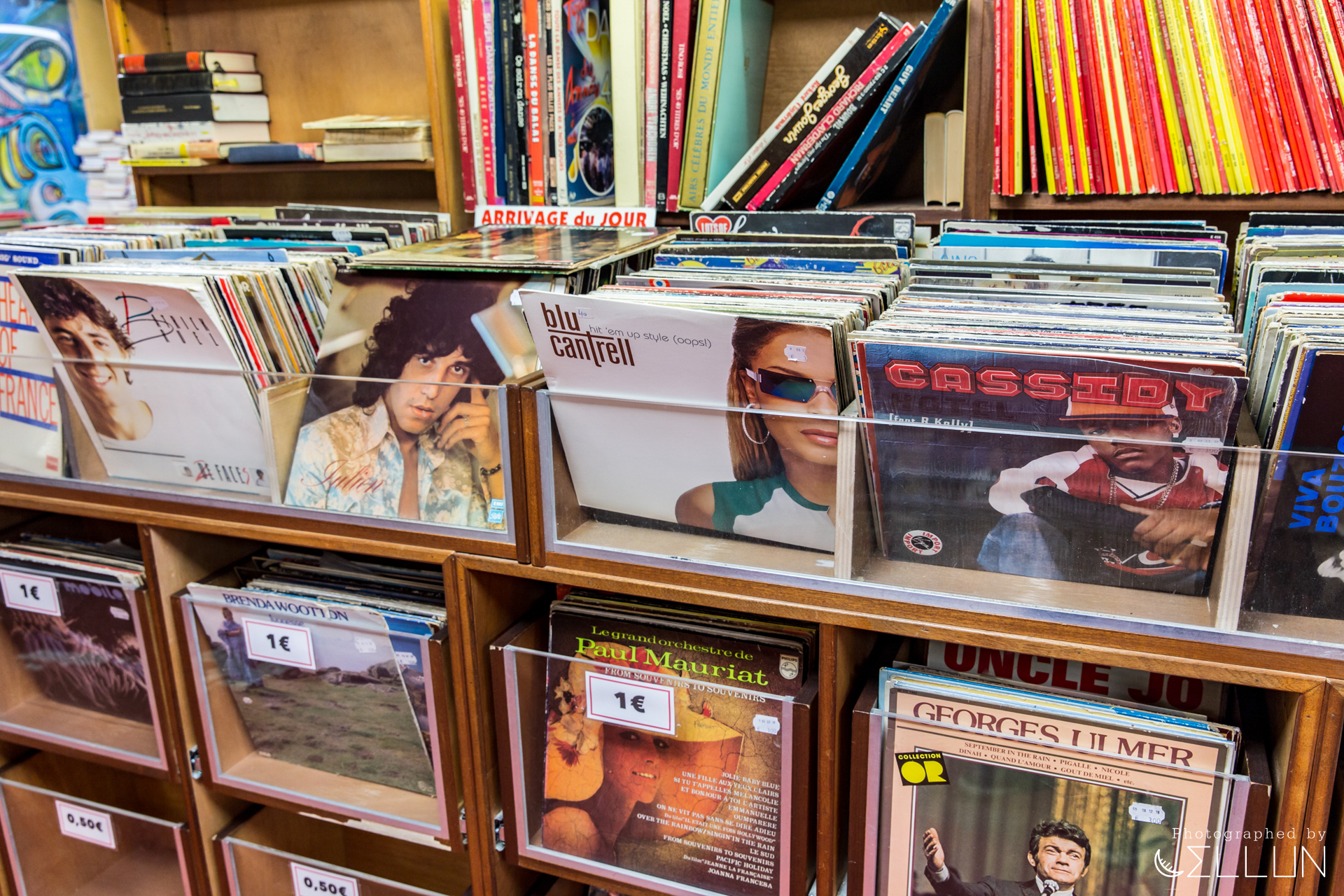 길을 가다보면 앞에 매대에 책들을 쌓아놓고 세일하는 서점들도 은근히 보였는데요. Boulinier라는 서점은 이렇게 책과 옛 LP판 등을 싸게 파는 곳이였습니다. 두 권에 10유로부터, 하나에 1유로, 0.2유로 같은 파격적인 가격에 파는 것들도 있으니, 프랑스 책에 관심있는 분들은 가볼만 하실지도 모르겠네요.