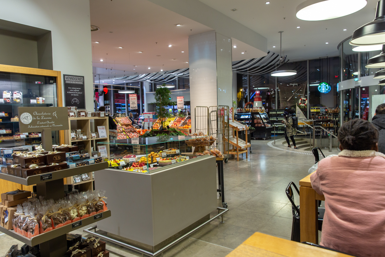 보그르넬은 파리 남서쪽에 있는 쇼핑몰인데, 잠깐 구경갔다가 아까 위의 하우스 오브 3 브라더스에서 사갔다가 아직 먹지 않은 당근 케이크를 먹으려고 스타벅스를 찾아갔다가 영업을 마감해서 헤매던 중 대형 마트 체인인 모노프리에 빵집과 앉아서 먹을 수 있는 테이블이 있어서 자리를 잡았습니다.