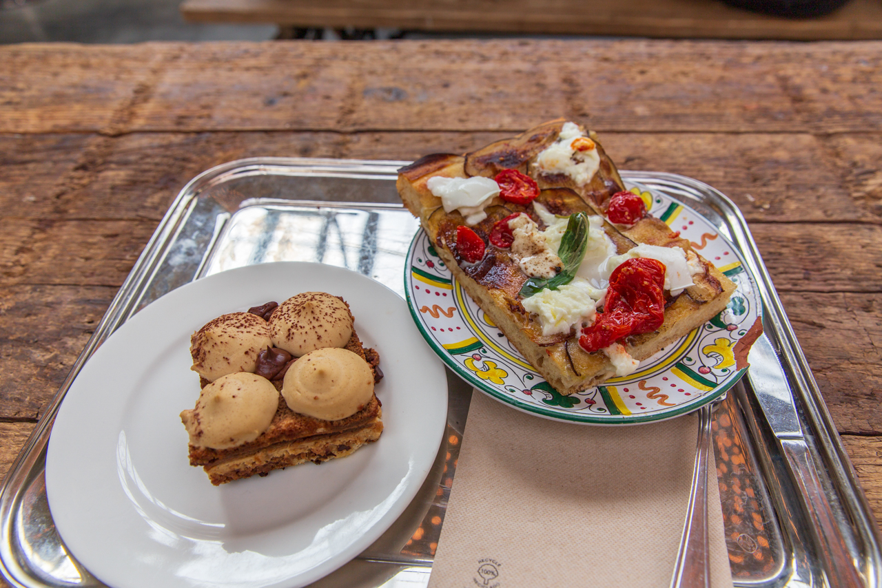 제가 시킨 메뉴는 가지 피자(8유로)와 오페라 케이크(5유로) 입니다.