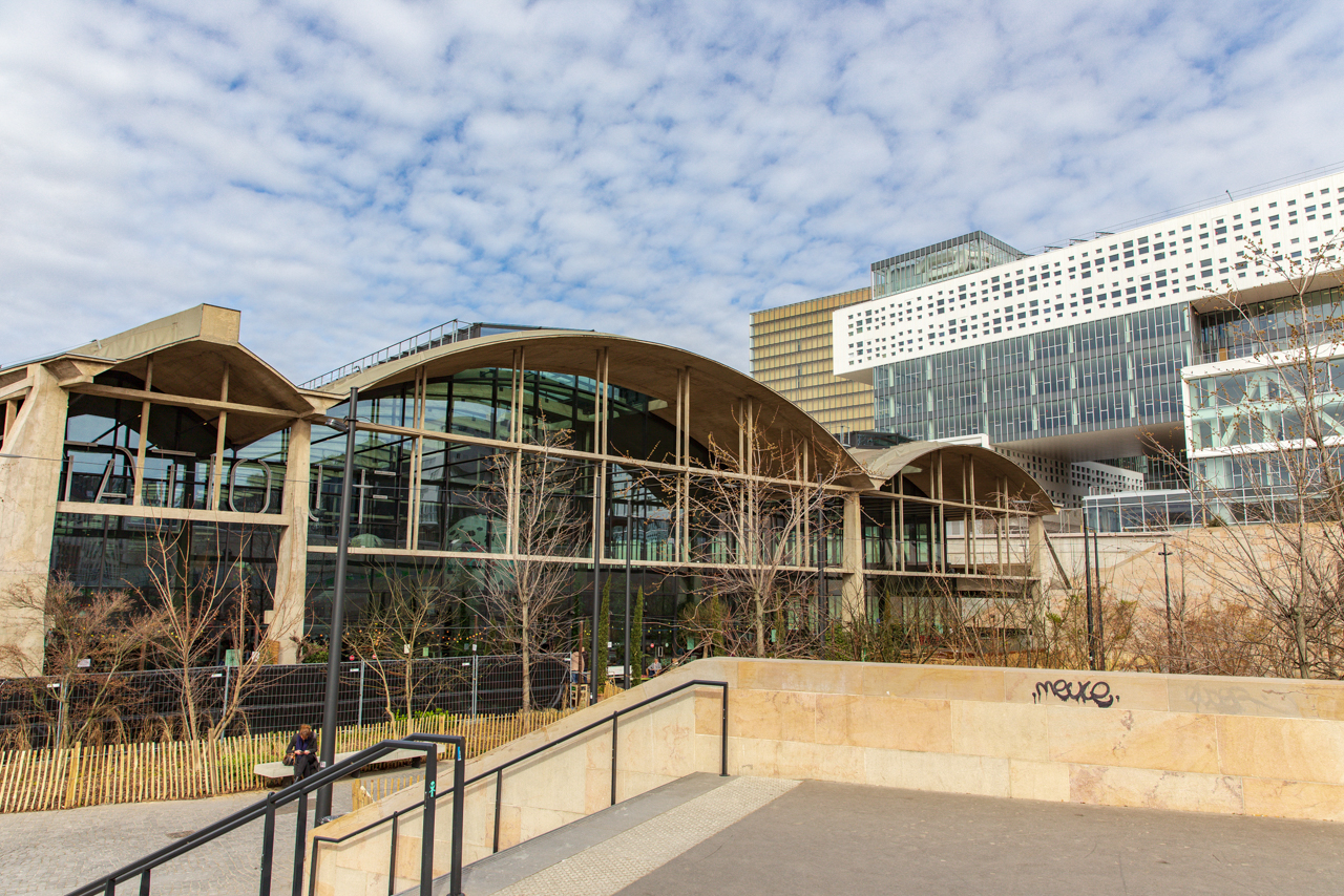 지하철 14호선, RER C선 Bibliothèque François Mitterrand(비블리오테크 프랑수아 미테랑)역에서 350m, 6호선 Chevaleret(슈발르헤)역에서 550m 거리입니다.
