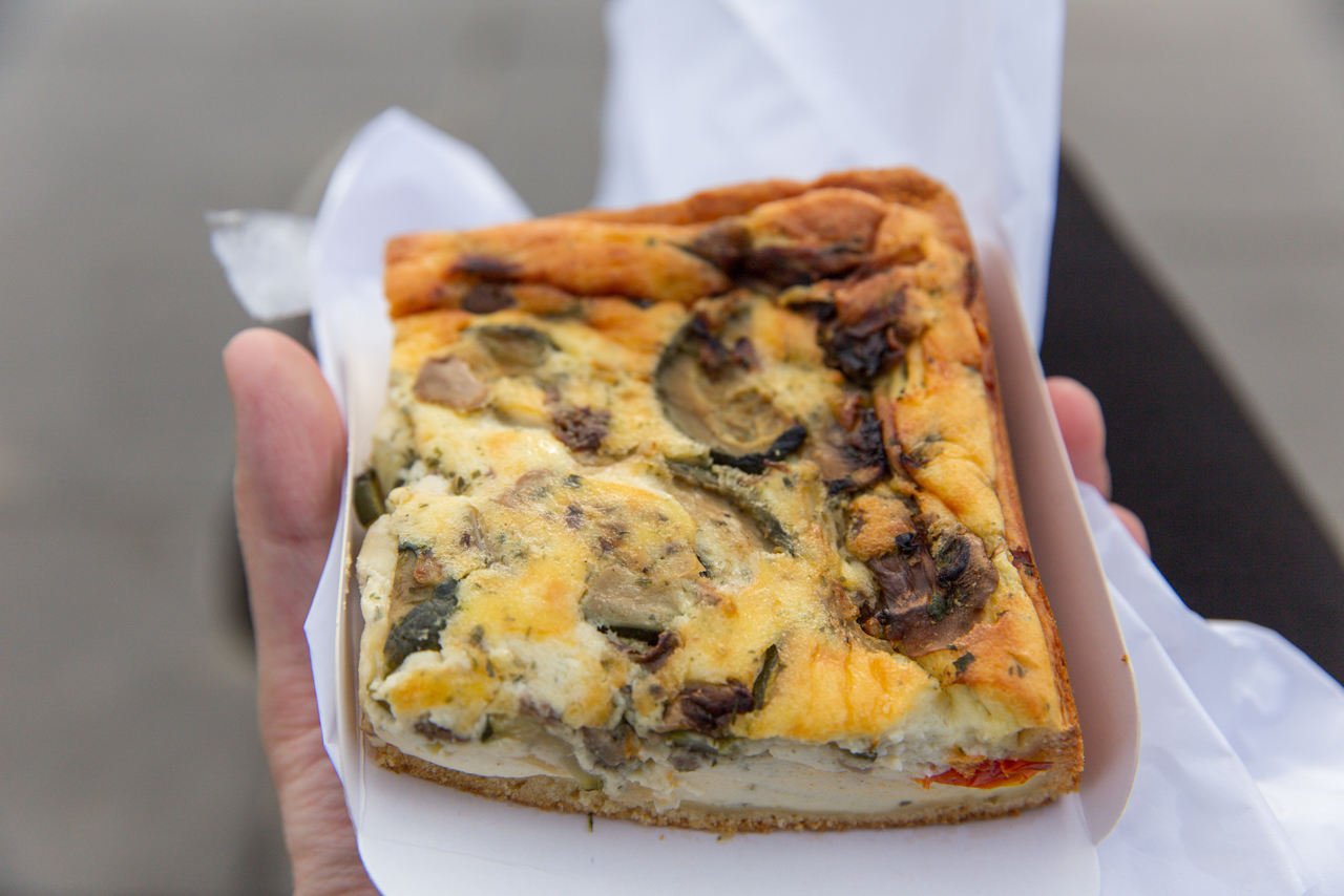 - 끼쉬는 양송이 버섯과 크림, 치즈 등이 듬뿍 들어있어서 고소하고 (약간 느끼하지만) 식사용으로 부족함이 없는 맛이였습니다. 끼쉬가 빵 부분보다는 위에 얹어진 부재료의 양이 훨씬 많다보니, 전에 시장에서 먹었던 끼쉬는 너무 흐물흐물해서 먹기 힘들었는데, 여기 끼쉬는 빵 부분이 나름 잘 받쳐줘서 좀 더 먹기 수월했습니다.