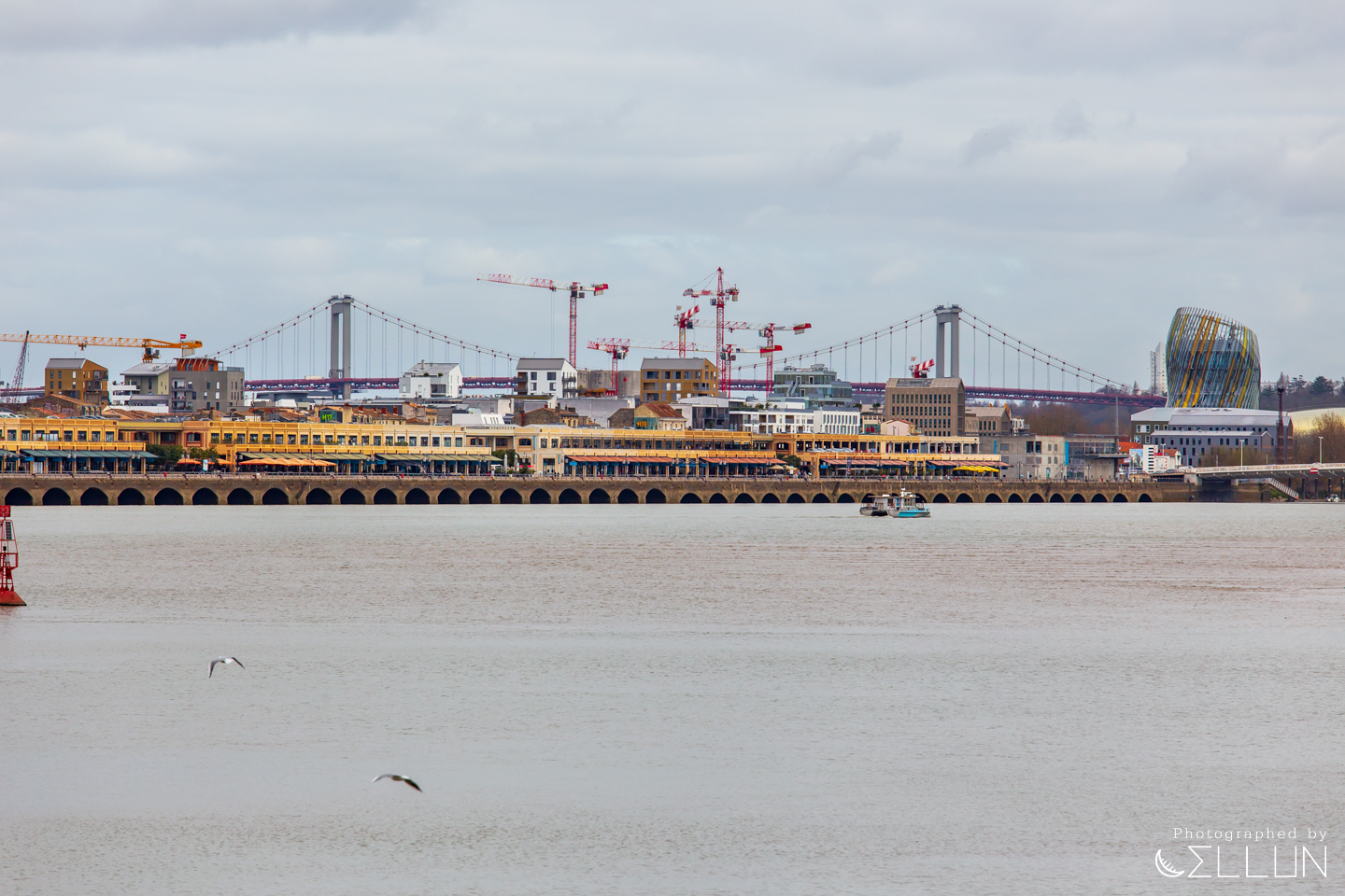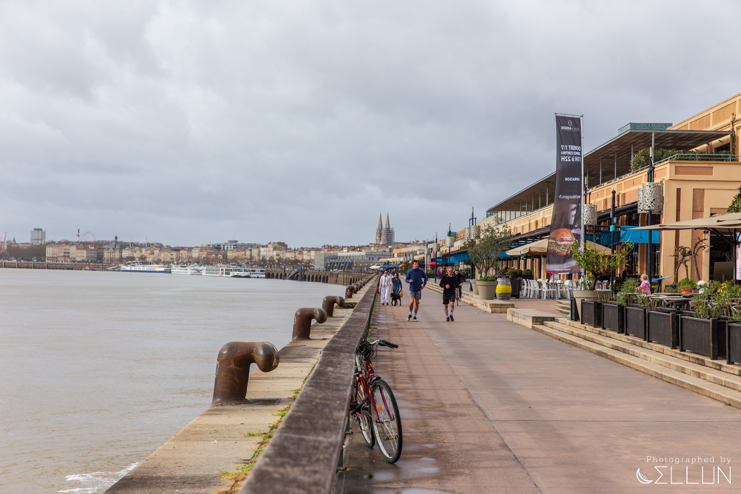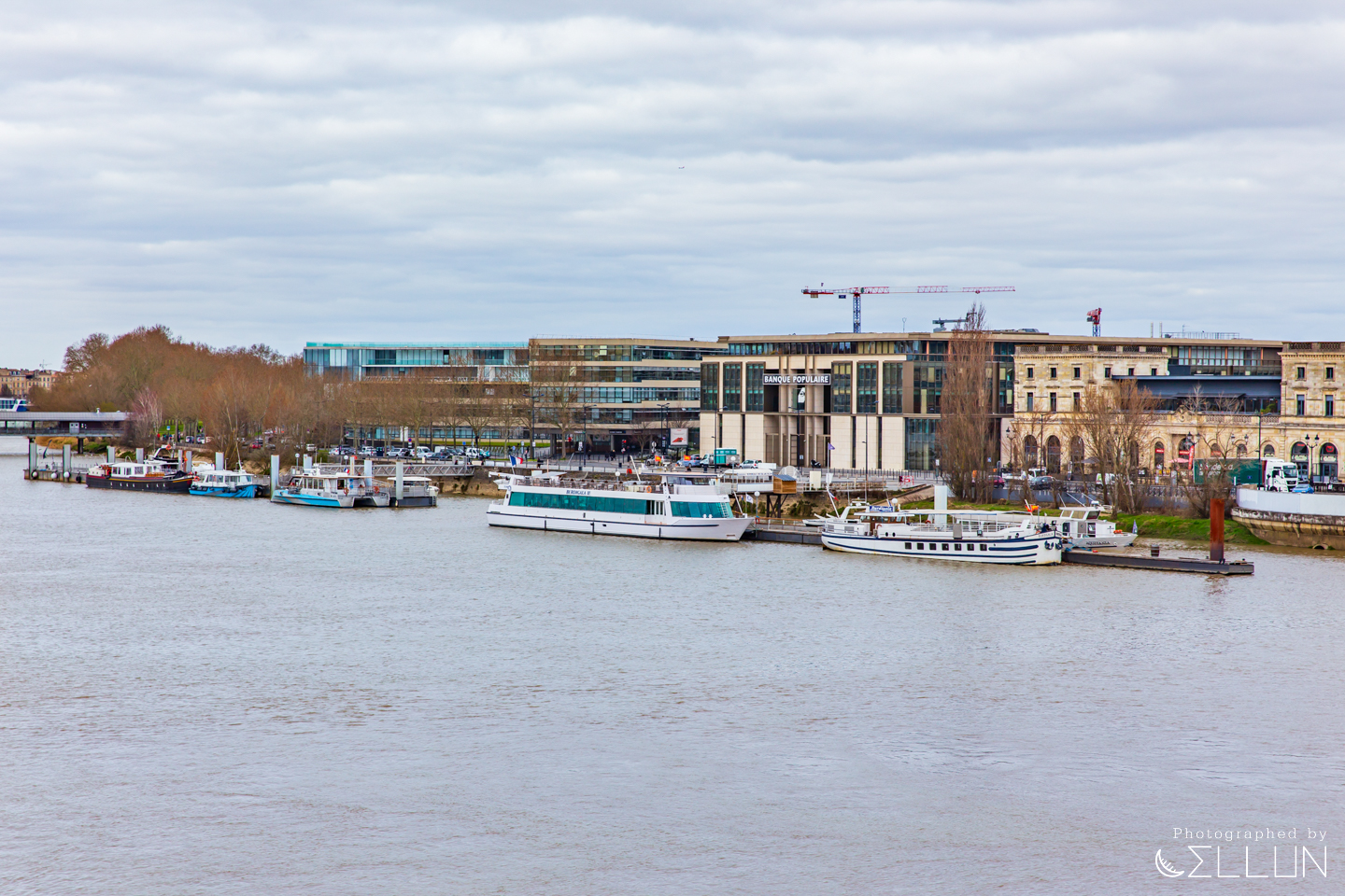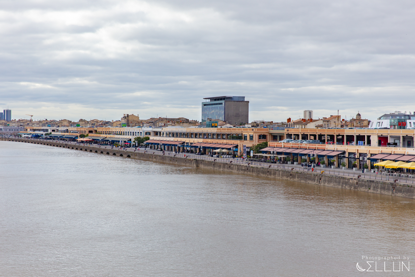 강변이 활꼴을 이루고 있어서 강 반대편이 아닌 곳도 저쪽까지 도시의 모습이 잘 보입니다. 특히 좀 멀리 떨어진 쪽에는 강을 따라 건설된 쇼핑몰이 있고, 그 뒷편으로는 와인 박물관인 시테 뒤 뱅과 커다란 사장교가 보여서 제가 지금 서 있는 부흐스 광장이 있는 고풍스런 시내와는 다르게 현대적인 모습을 볼 수 있었습니다.