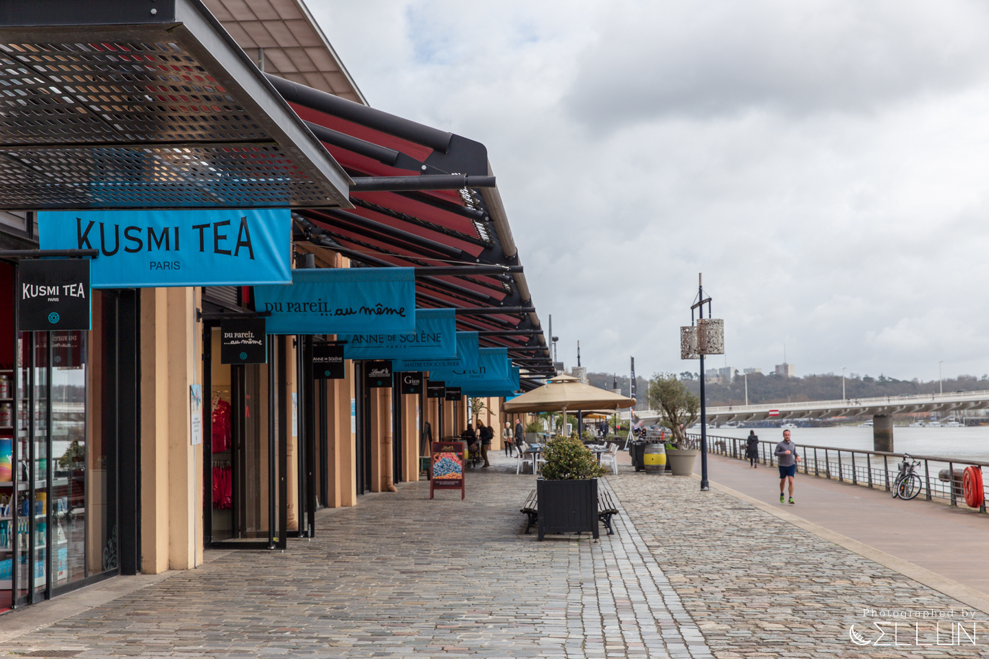 이런 넓은 강을 끼고 시내 중심가와 시테 뒤 뱅 사이에는 Quai des Marques(께 데 마흐끄)라는 쇼핑몰이 자리하고 있습니다. 강을 따라서 길게 난 쇼핑몰이고 강가쪽에는 음식점과 각종 매장들이 있어서 산책삼아 들러봐도 좋을 것 같습니다.