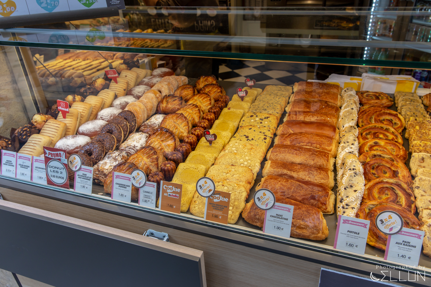 메인 스트리트가 끝날무렵 보이는 한 저렴한 빵집. 크루아상 하나가 단돈 1유로이고, 대부분 빵이 1유로 대로 프랑스 빵집 중에서도 싼편인데, 3개를 사면 하나 더 준다고 되어있네요.