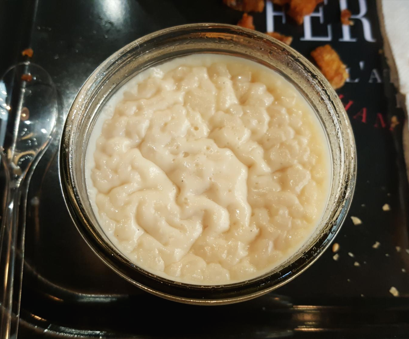 카라멜 우유밥이라고 하니까 너무 이상한 표현인데, 우유밥은 프랑스에서 Riz au Lait라는 이름으로 먹는 디저트입니다. 쌀을 우유에 끓여서 죽같이 만들어 달달하게 먹는 간식인데, 여기에 카라멜 소스가 바닥에 깔려있어서 카라멜 라떼의 밥 버전이라고 해야하나 싶은 맛입니다.