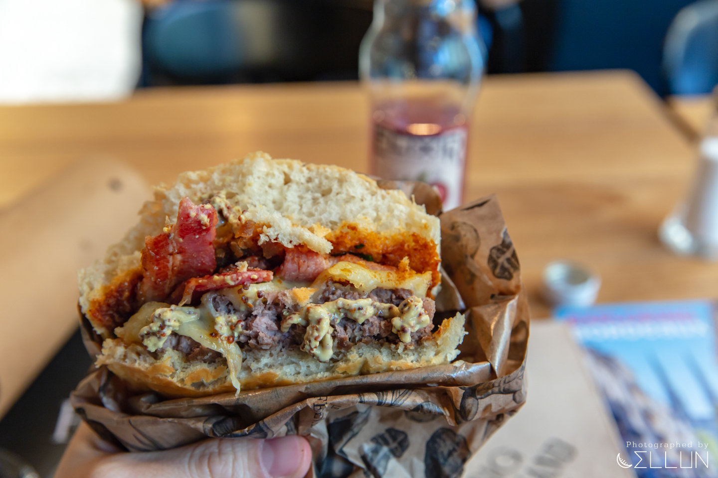 맥도날드, 버거킹 등 일반 프랜차이즈 햄버거가 패티에 토마토, 양상추 등 채소로 이루어진 구성과는 다른 특이한 구성이였는데요. 채소보다는 고기와 치즈 위주로 들어있는데 패티는 함박스테이크 수준으로 두껍고 육즙이 가득한 맛을 갖고 있었습니다. 그리고 치즈는 사보이산 치즈라고 하는데 모짜렐라치즈 느낌으로 쫄깃하고 고소한 맛이였습니다.
