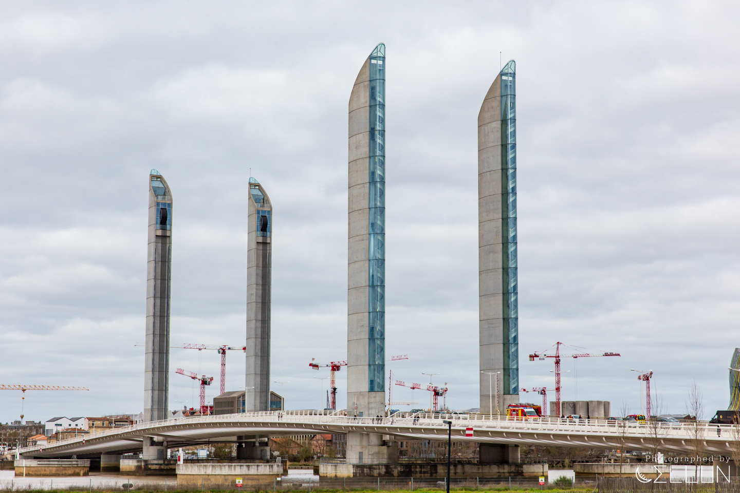네 개의 기둥의 모양이 인상적인 Pont Jacques Chaban-Delmas(자크 샤방-델마교) 다리를 지납니다. 2013년에 완공된 최근에 지어진 다리인데 기둥 높이가 무려 77m나 된다고 하네요. 그래서 멀리 떨어진 구시가지에서도 단번에 눈에 띄는 다리입니다.