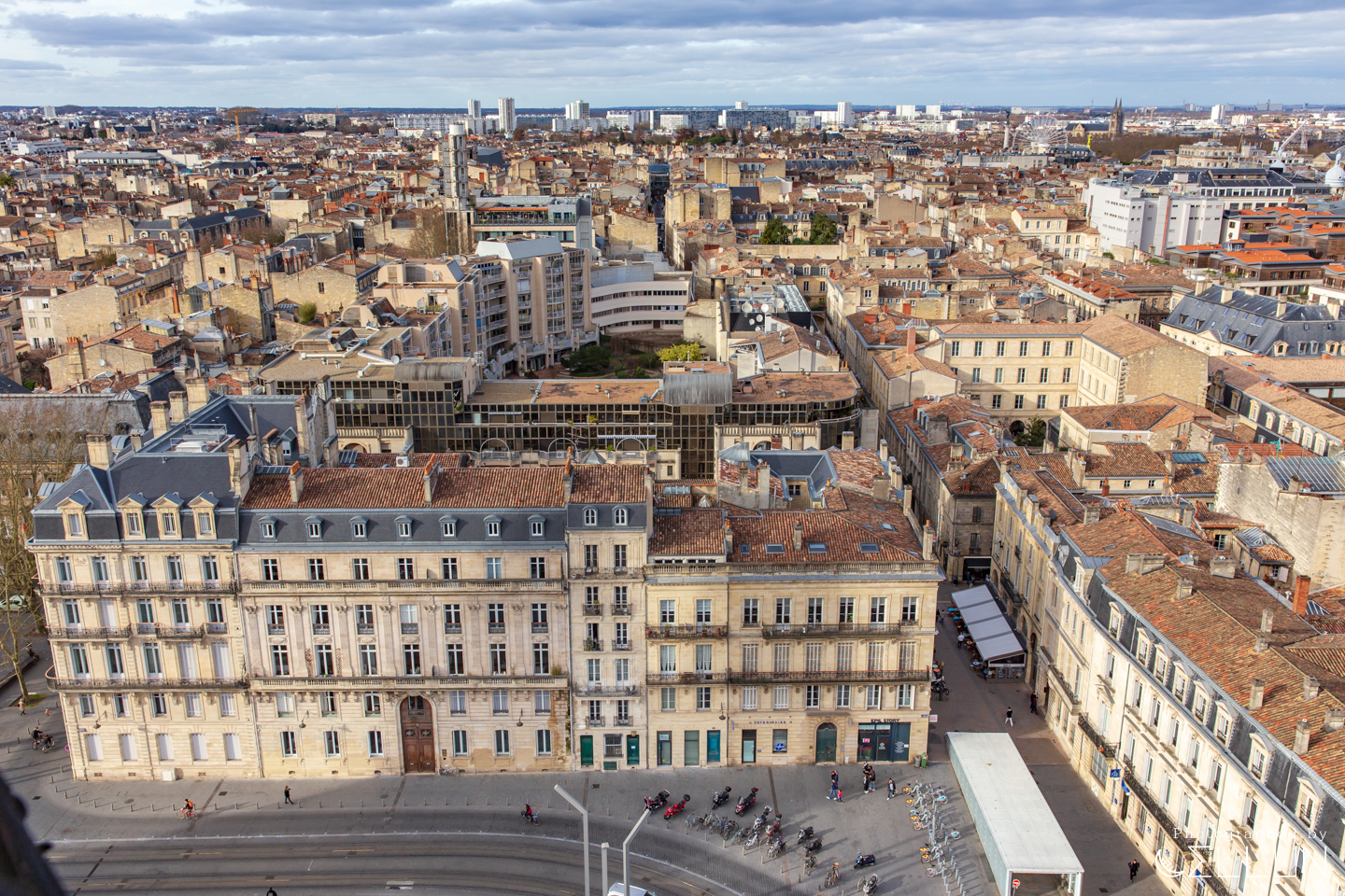 가까이로는 구시가지가 보이면서 중간에는 가론강과 아까 시티투어버스를 타고 지나갔던 다리와 쇼핑몰, 그리고 저 멀리에서는 공업지역의 모습 등 다양한 분위기의 보르도의 모습이 층층이 쌓여있는 전망이 보여서 더욱 다채로워 보입니다.