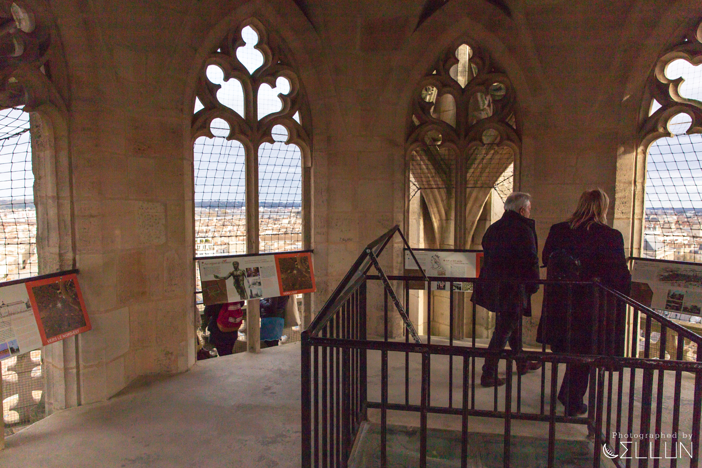 탑은 두 개 조망장소가 있는데 완전 꼭대기 가기 약간 전에 중간에 조망할 수 있는 장소가 있습니다. 이곳에서는 보르도 시내가 보이는 방향에 있는 장소들이 설명되어 있습니다.