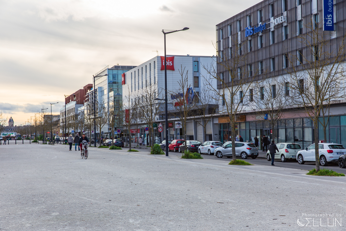 Jardin Botanique 트램 정류장에서 내려서 왼편으로 꺾으면 넓직한 길과 잔디밭이 보입니다. 현대적으로 지어진 이비스 호텔과 까르푸 마트들이 보이네요. 구시가지에서 좀 떨어진 위치에서 저렴하게 이용할 수 있는 숙소인 듯 보이네요.