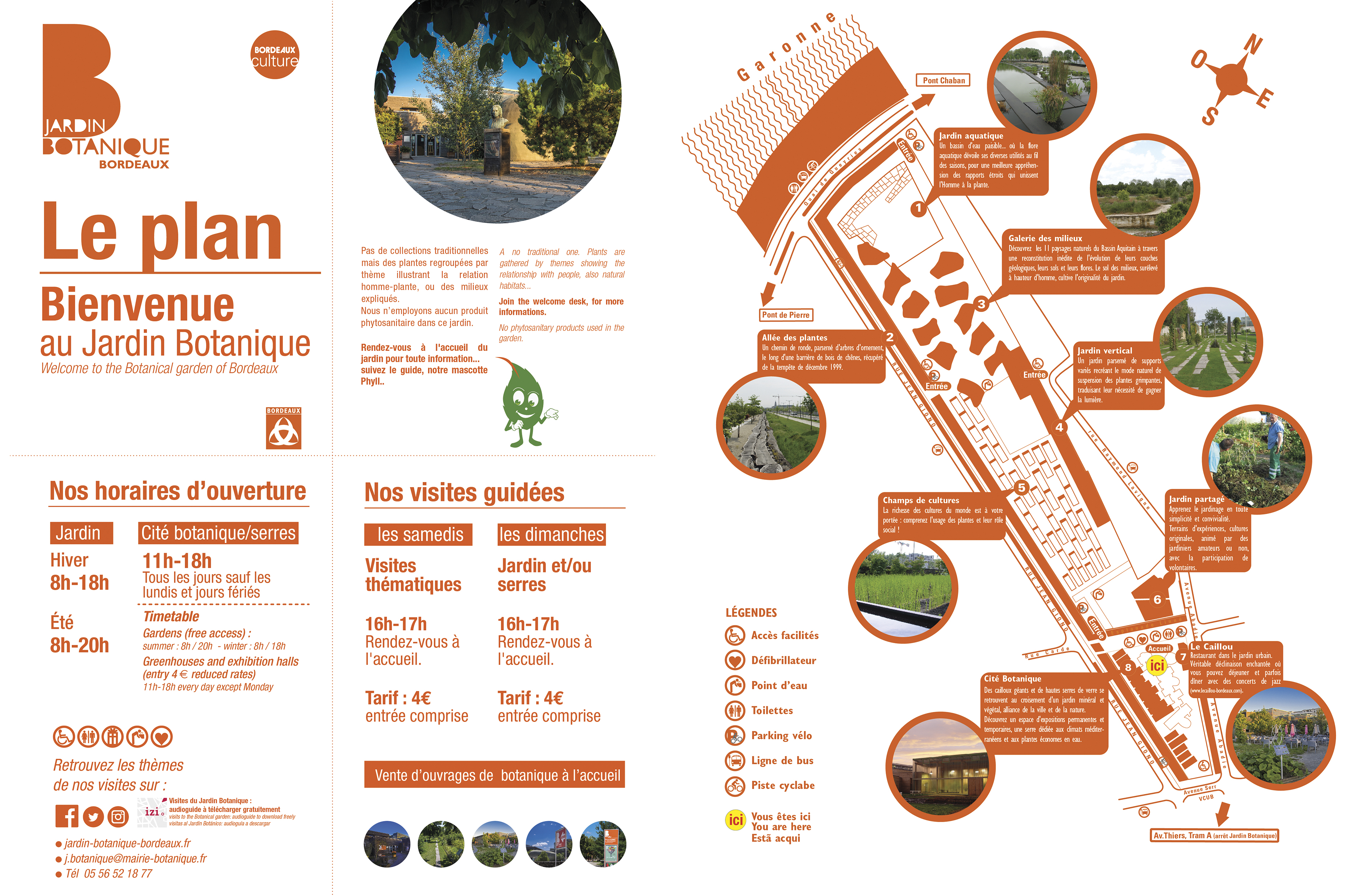 위의 지도를 보면 보르도 식물원은 세로로 긴 모양으로 되어있는데요, 입구쪽인 아래부분이 전시관이고 위쪽으로 기다란 부분은 정원으로 구성되어 있습니다. 정원은 앞쪽은 인류 문화에 관련된 식물들이 전시된 문화 정원, 중간 부분은 섬 형태로 아키텐 지역의 다양한 지리별 식생을 재현해놓은 중앙 갤러리, 가장 뒷편은 연못에서 자라는 식물들을 전시한 수생정원이 있습니다.