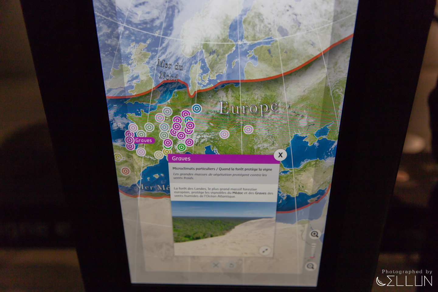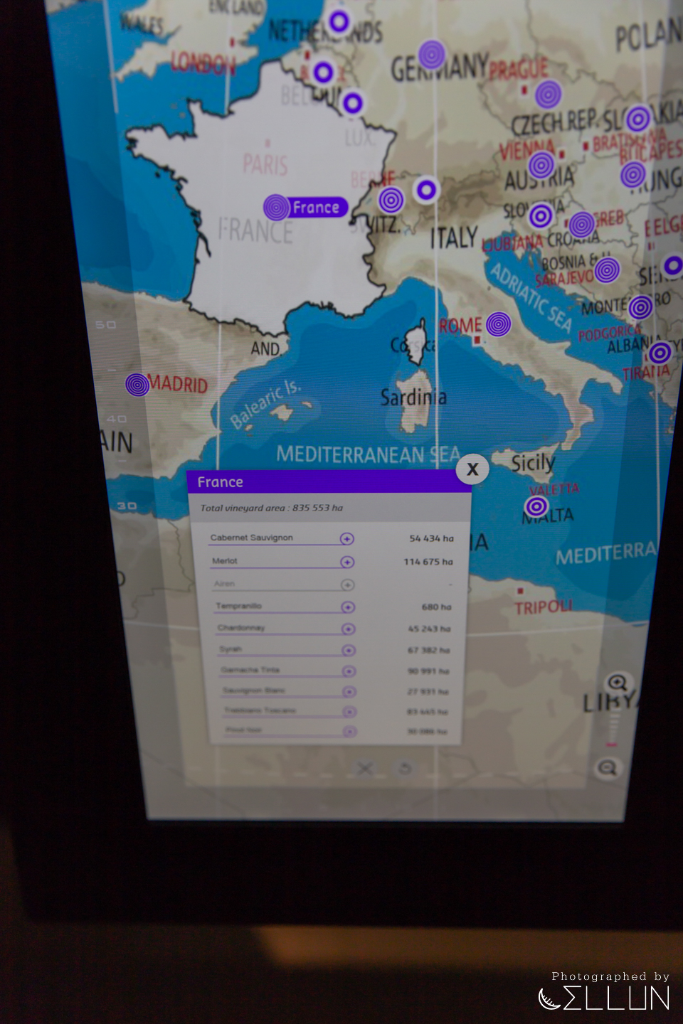 이 코너에서 소개하는 와인 농장은 수십가지가 있는데, 오디오가이드를 터치하여 원하는 지역의 내용을 골라서 볼 수 있는 자유도가 있으며, 방대한 컨텐츠를 본인이 선택하여 볼 수 있는 것이 시테 뒤 뱅 전시관의 가장 큰 특징입니다.