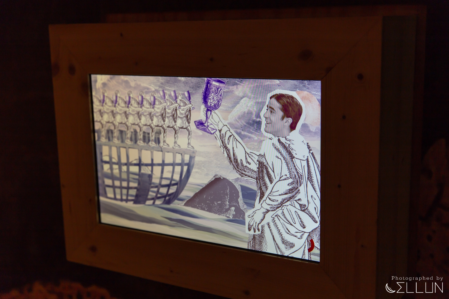 단순히 인터뷰 음성만 나오는 것이 아니라 각 사람 앞에 다각형 모양의 판에 여러 자료화면과 일러스트 등을 보여주어 와인농장의 모습을 이곳에서 간접적으로 체험할 수 있습니다.