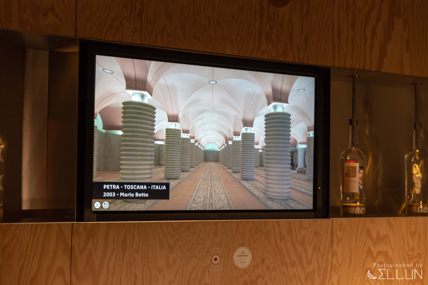 또한 유리병들 사이에 있는 디스플레이는 와인 저장고의 모습을 보여주는데, 전통적인 오크통에 저장되어 있는 저장고 뿐만 아니라, 무슨 미션임파서블에서 나올법한 SF느낌의 최신식 저장고 등 다양한 모습을 볼 수 있습니다.
