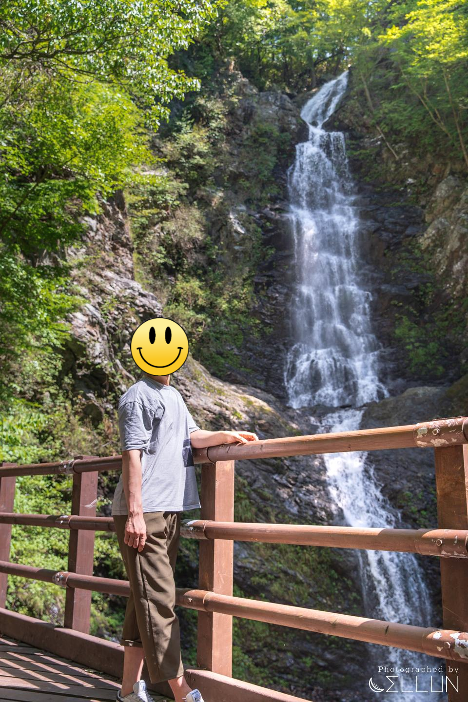 폭포를 배경으로 동생사진을 찍었더니 훨씬 규모가 잘 체감되는 것 같네요~