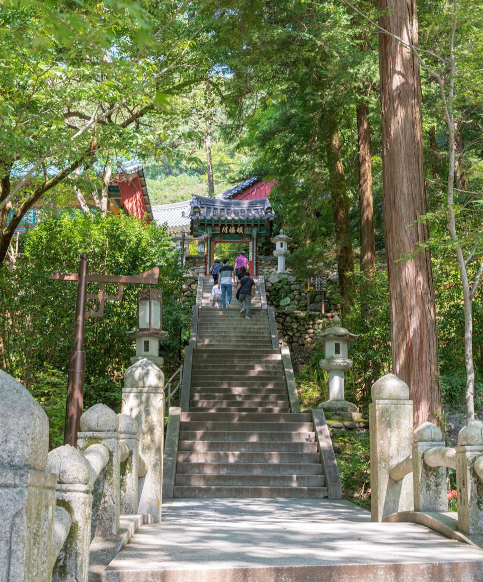 울창한 숲 사이로 난 돌계단의 풍경이 아름답네요.