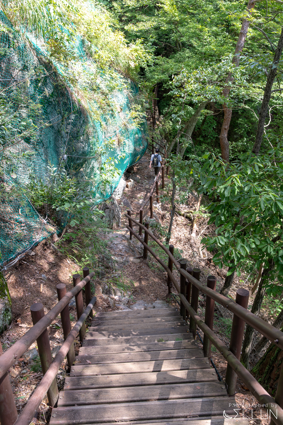 여기서 폭포로 가는 길은 계단을 타고 오르락내리락을 몇 차례 반복하면서 내려가는 코스로 되어있습니다.