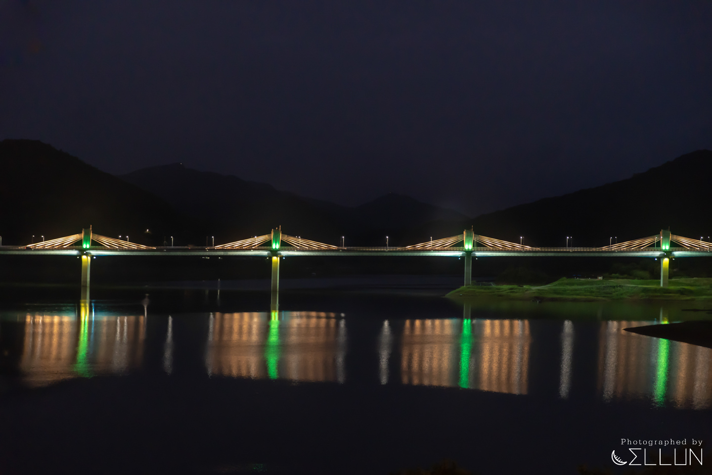 시간을 조금 보내고 나니 어느덧 해가 완전히 지고 다리에 불이 들어오네요. 사장교로 지어진 다리와 호수에 반사된 불빛도 정말 예쁩니다. 제가 사진을 대충찍었나 실제보단 좀 못나게 나왔네요ㅠ
