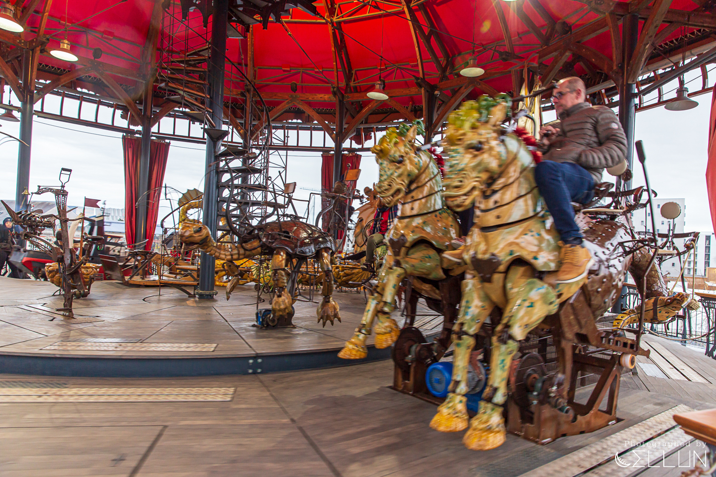 그 다음 기계 섬에서 강변 방향으로 2-300미터 떨어진 곳에 커다란 회전목마 시설이 보이는데요. 여기는 해양 세계 회전목마(Carrousel des Mondes Marins)으로 3층 구조로 된 커다란 회전목마입니다. 기존 회전목마가 말 그대로 말을 타는 거라면, 여기는 물고기와 배, 잠수함 등 해양생물과 바다 교통수단을 타는데, 기계섬과 비슷한 스팀펑크 느낌의 개성있고 고퀄리티 조형이라, 입장료를 내면 탑승과 구경을 해볼 수 있습니다.
