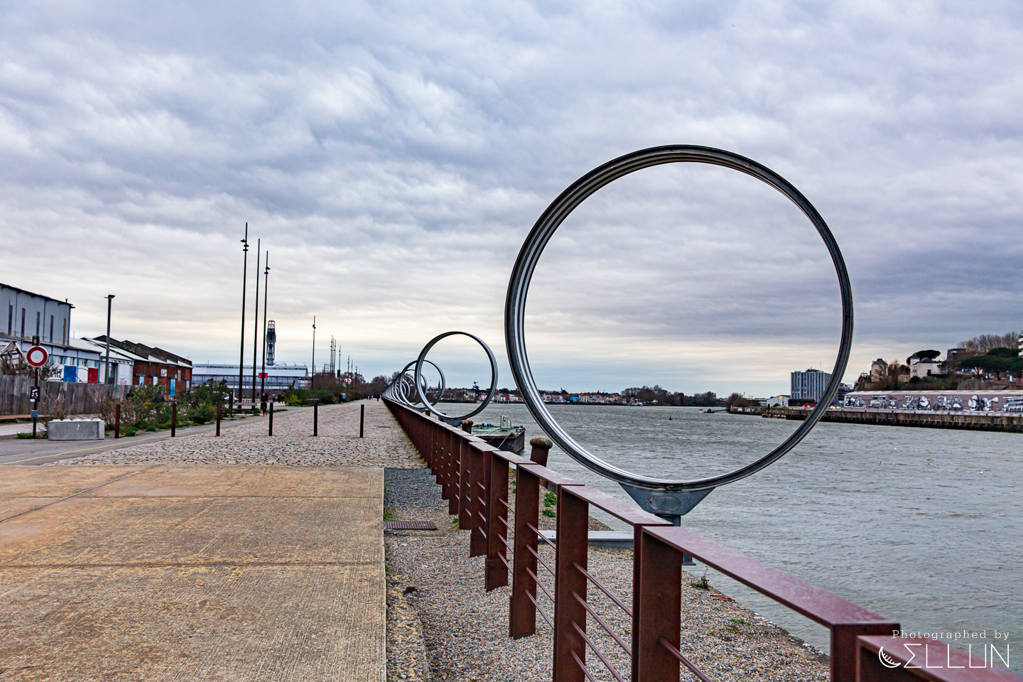 Les Anneaux는 낭트 섬 서쪽 강변 수백미터를 따라 설치된 18개의 고리 모양 조형물입니다.