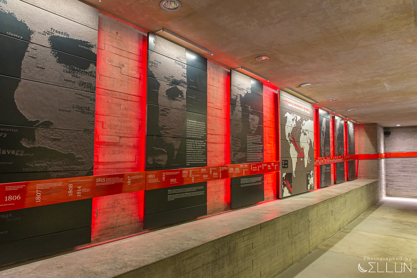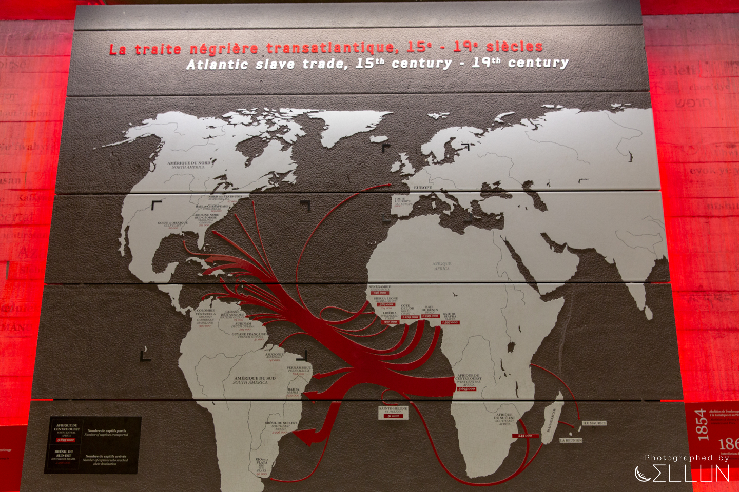 이 통로를 지나면 노예무역 및 이주에 관한 작은 역사관이 있는데, 15세기부터 19세기까지 아프리카에서 아메리카와 유럽으로 이동한 루트와 규모에 대한 연대기와 지도를 볼 수 있습니다.