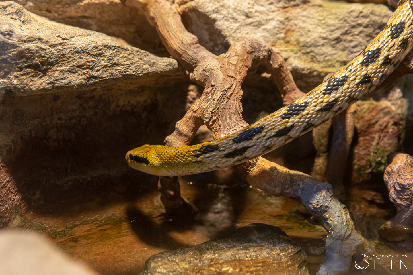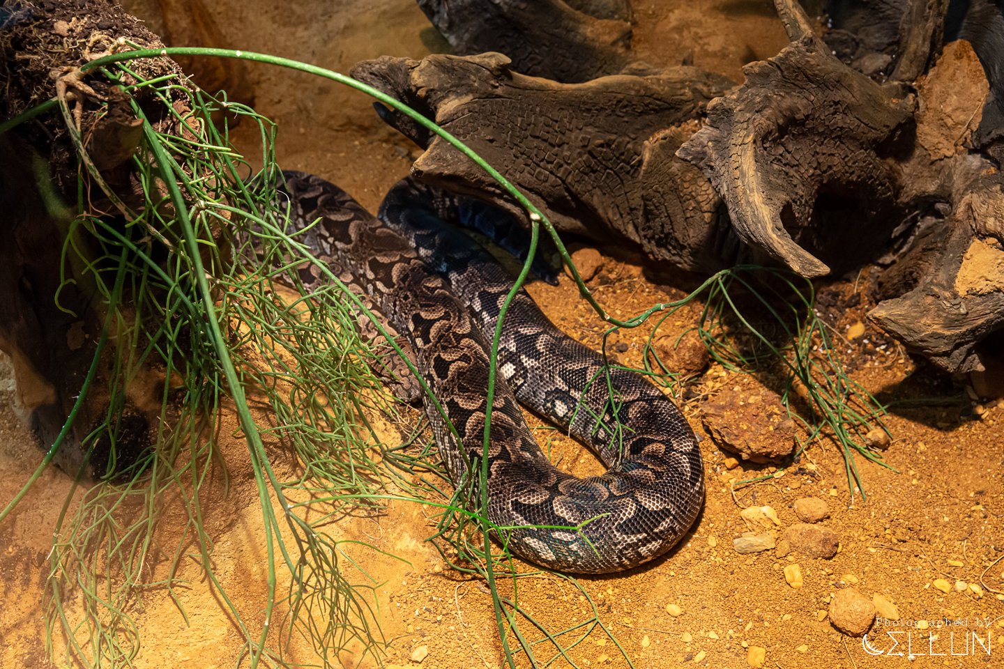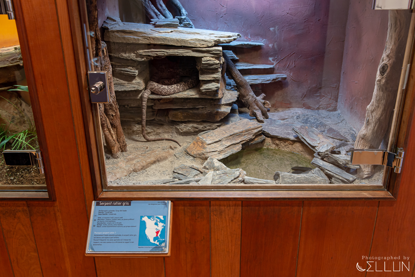 뱀 사육장은 넓진 않지만 좁은 복도가 얼기설기 엮어진 구조입니다. 크고 작은 유리창 안으로 세계 각 지역의 뱀이 서식하는 여러 환경들을 실제처럼 조성해 놓아서, 물가, 바위, 모래, 나무 등 다양한 환경의 세트가 마련되어 있었습니다.