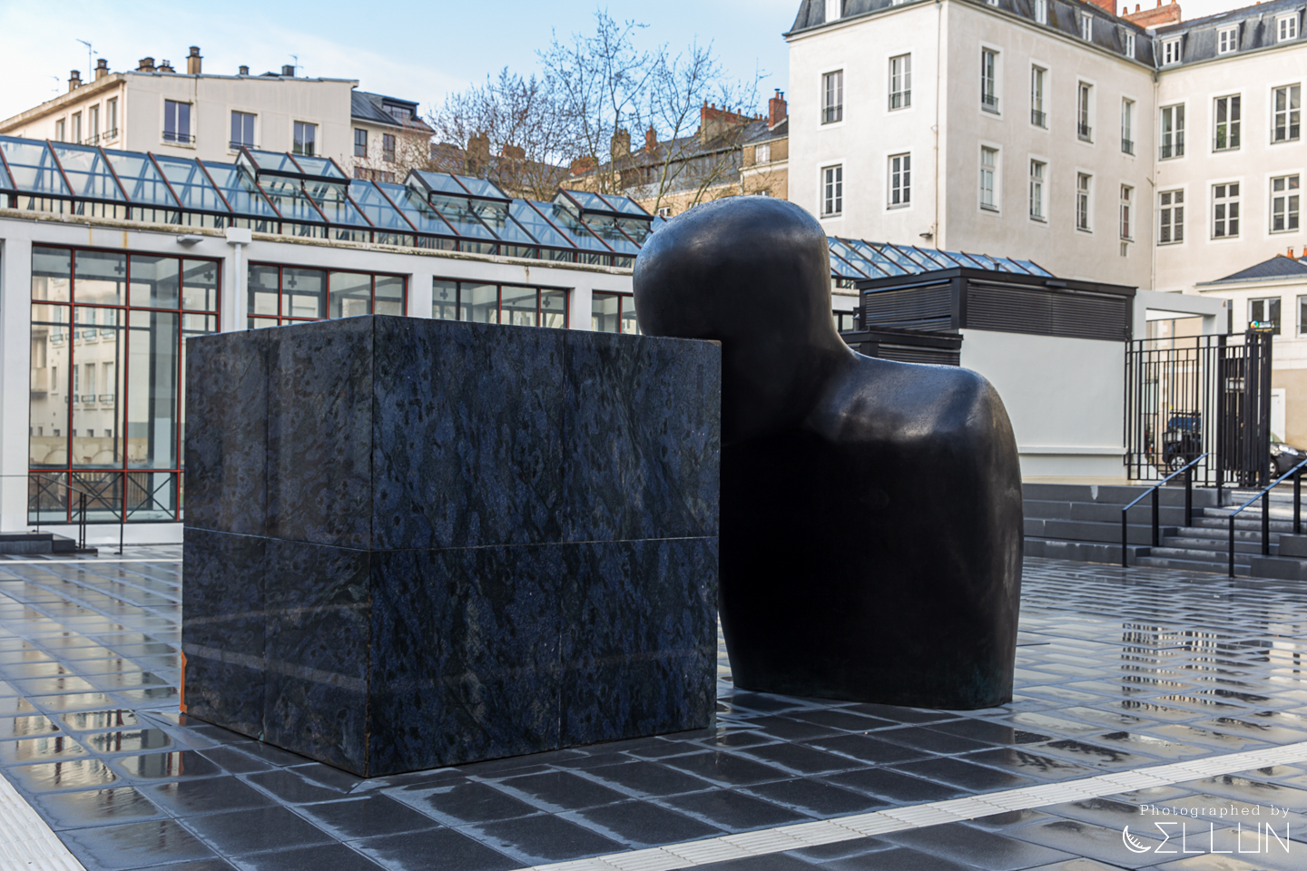 좁은 골목이 끝나고 오른쪽으로 돌면 문화센터이자 인쇄 박물관이 있는 Médiathèque(메디아테크)가 나오는데, 입구 안쪽을 보시면 위 사진처럼 작은 광장처럼 생긴 안마당에 조형물이 하나 있는데요.
