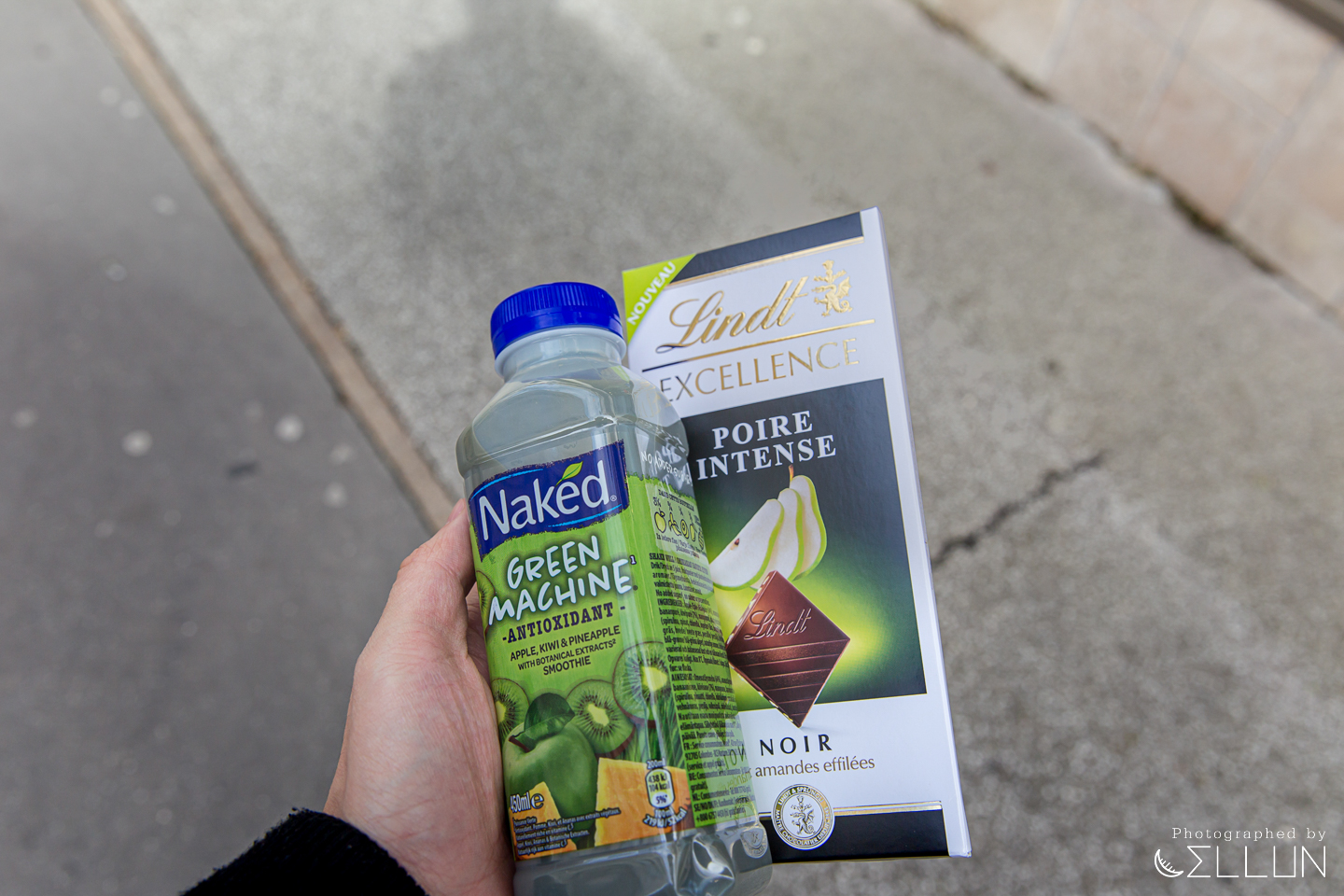 중간에 모노프리(Monoprix)에 들러 점심 대신 길 가면서 대충 먹을 키위&녹색채소 스무디(€2.89)와 린트 초콜릿을 구입!