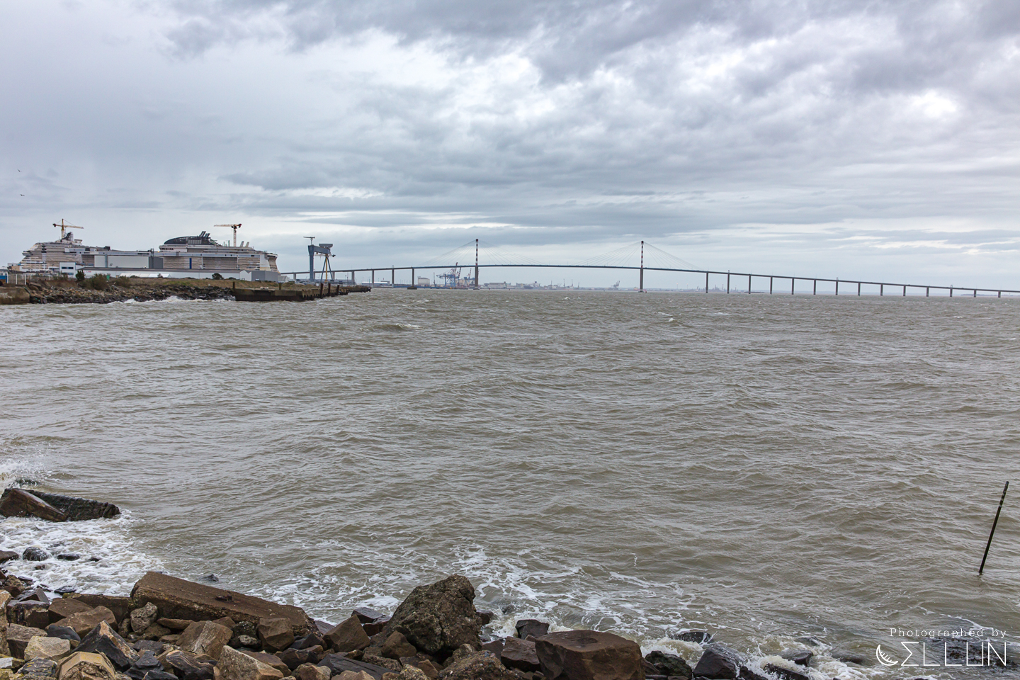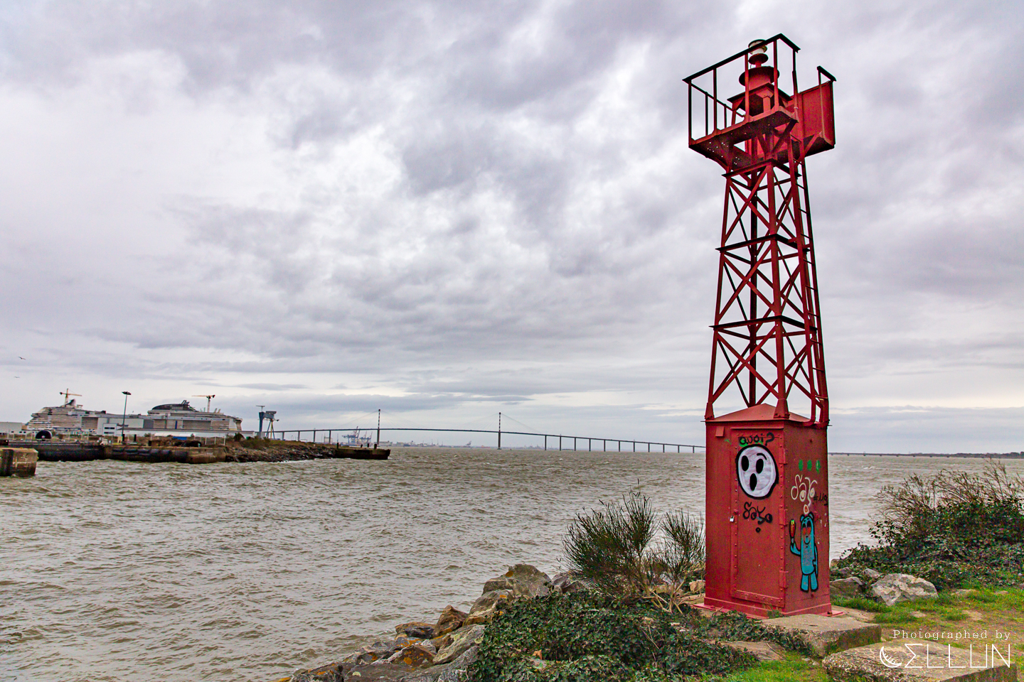 반대편에 긴 대교가 보이는데, 루아르 강의 가장 하구에 있는 생 나제르 대교입니다.