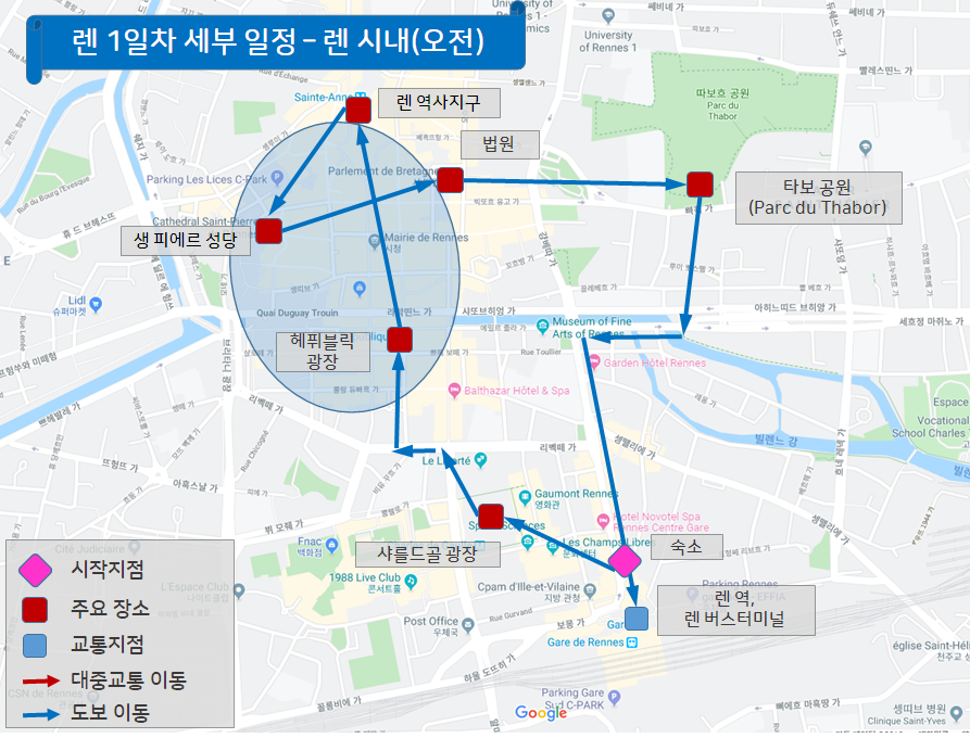 그리고 그 두 곳이 교통이 불편해서 중간 기착지로 렌(Rennes)에 머물며 2박 3일 일정을 보냈습니다.