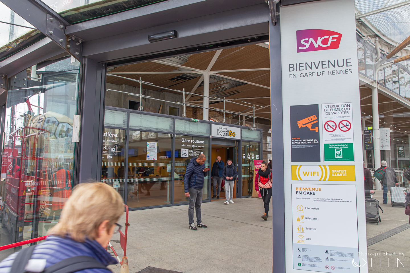 BreizhGo 버스 매표소는 렌 역 북쪽 출구에서 정면 방향이 아닌 동쪽 방향의 측면 출구 방향으로 향하면 출구 바로 나가기 전에 매표소가 있습니다. 요금은 편도 15유로, 왕복 30유로입니다.