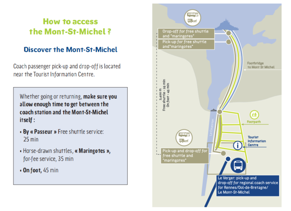 버스는 몽생미셸 마을에서 3km 정도 떨어진 관광 안내소까지 운행하며,