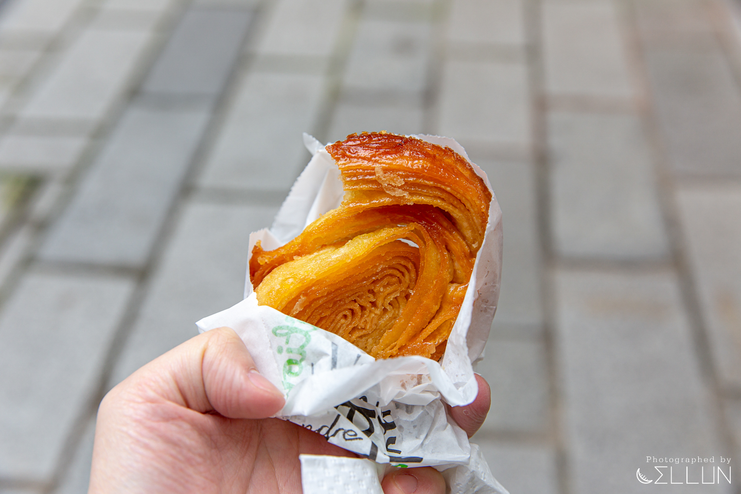 이 집에서도 쿠인 아망을 대표메뉴로 팔고 있는데, 노릇노릇하게 구워진 모습이 먹음직스러워보여 하나 사보았습니다.(2.5유로)