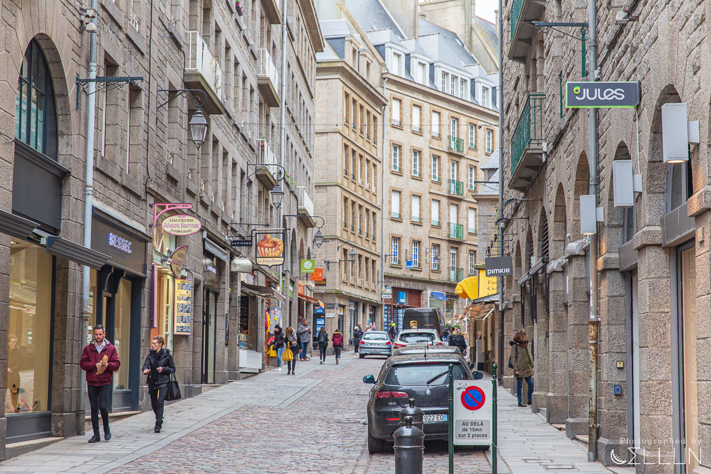 생 말로 구시가지는 오래된 도시답게, 19-20세기 프랑스 도시 풍경이 아닌 그보다 오래된 17-18세기의 근세적인 분위기가 짙게 납니다. 대서양과 북해를 잇는 영국과 마주보는 바닷가에 있는 도시답게, 화강암 벽돌을 쌓아만든 집들의 모습이 무채색의 다소 투박하지만 견고한 느낌입니다.