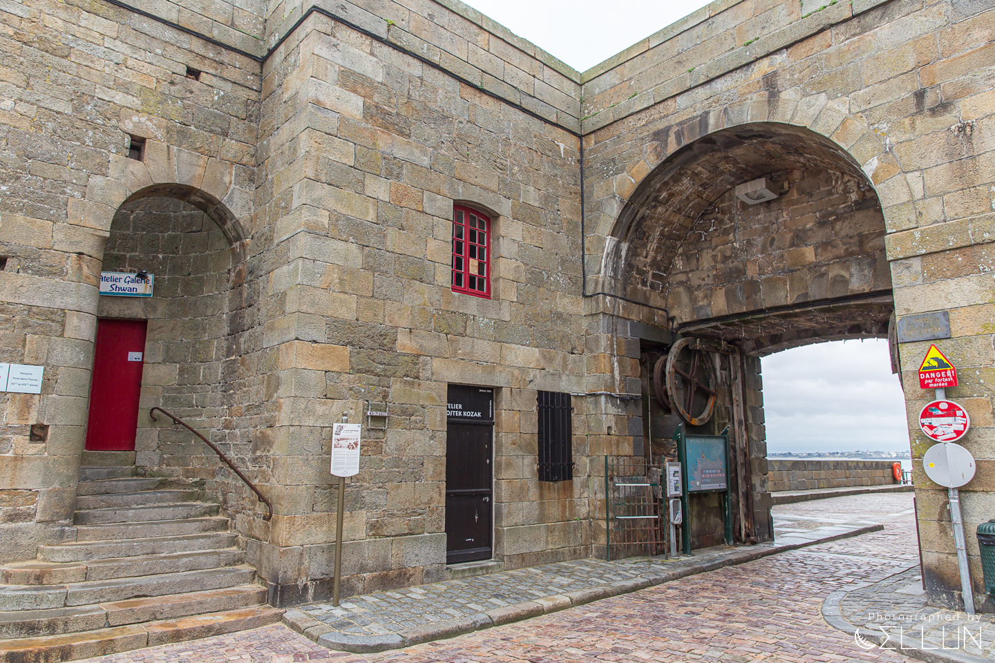 여기서 왼편 계단으로 성벽 위로 올라갈 수 있고, 오른쪽 출구로 나가면 생말로 시내 방향 및 Fort National 요새가 있는 해변으로 갈 수 있습니다.