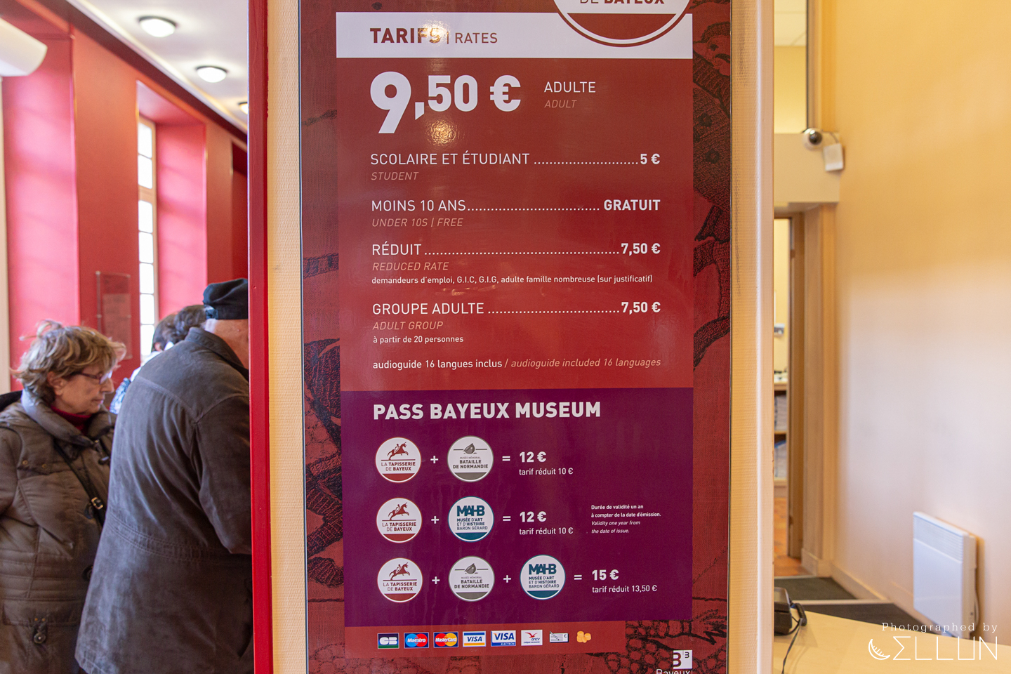 입장료는 9.5유로로 생각보다는 좀 비싼 편입니다만, 다른 바이외에 있는 박물관과 통합권으로 구매하면 할인폭이 커집니다. 노르망디 전투 박물관 입장료는 7.5유로인데, 여기 태피스트리 박물관과 함께 구매하면 12유로로 5유로나 절약되고, 또 다른 박물관인 MAHB(바론 제라르 미술&역사 박물관)과 함께 3개 패키지는 15유로로 각각 따로 사는 것보다 9.5유로나 아낄 수 있습니다. 2차세계대전 관련 박물관은 여기 뿐만 아니라 노르망디 지방에 곳곳에 있는데, 다른 곳을 가볼 여유가 없다면 태피스트리 박물관과 함께 둘러보시는 것도 좋을 듯 합니다.