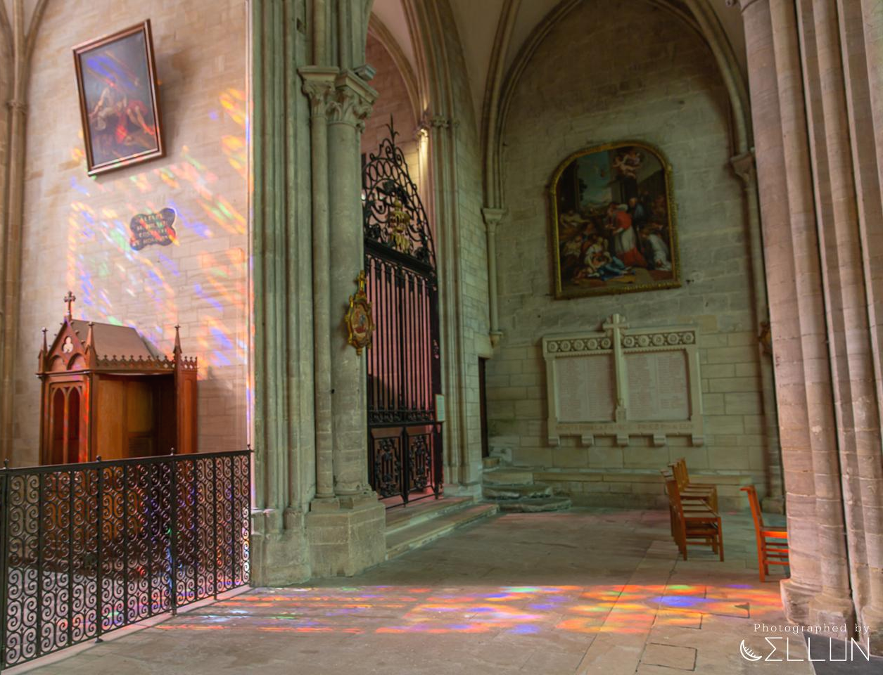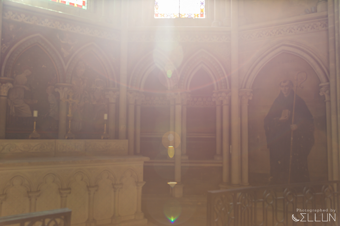 스테인드 글라스를 통과한 빛이 상당히 특이한 모양으로 대칭적으로 플레어가 생겨서 영화같은 느낌이 들었구요.