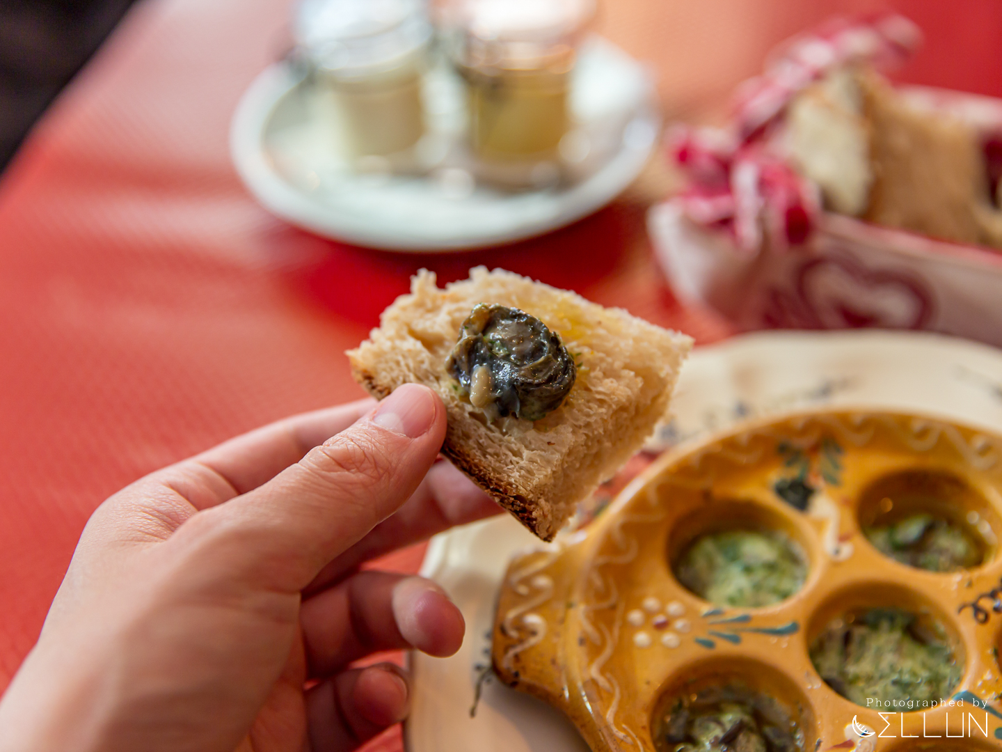 달팽이 살을 마늘, 허브 등 향신료와 함께 기름에 자글자글 볶아서 나옵니다. 우리나라에서 요리이자 술안주로 인지도가 있는 새우를 기름에 볶은 스페인 음식인 감바스와 어느정도 비슷한 듯.