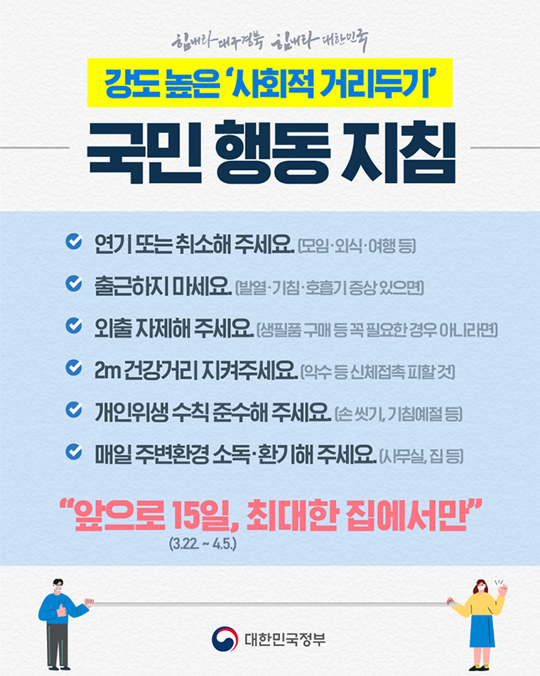 Since the Republic of Korea is a country adjacent to China, the origin of COVID-19, a significant number of people were infected in the early days of the occurrence of the epidemic. Nevertheless, due to agile actions of government and people's cooperation, Korea is considered to have minimized damages about both human and economy compared to other countries.